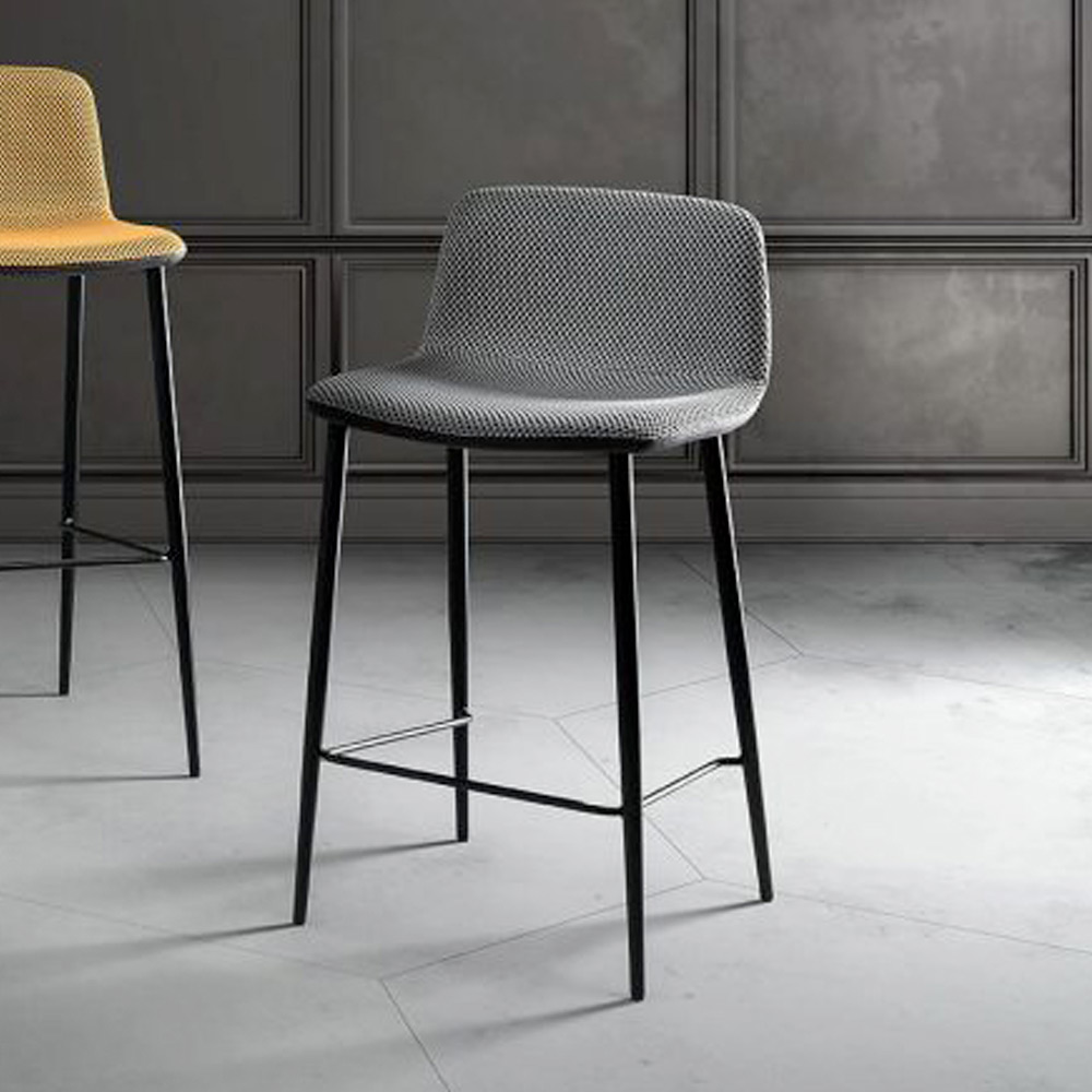 Dining Stool in Vulcano Fabric and Metal Legs Made in Italy - Amane