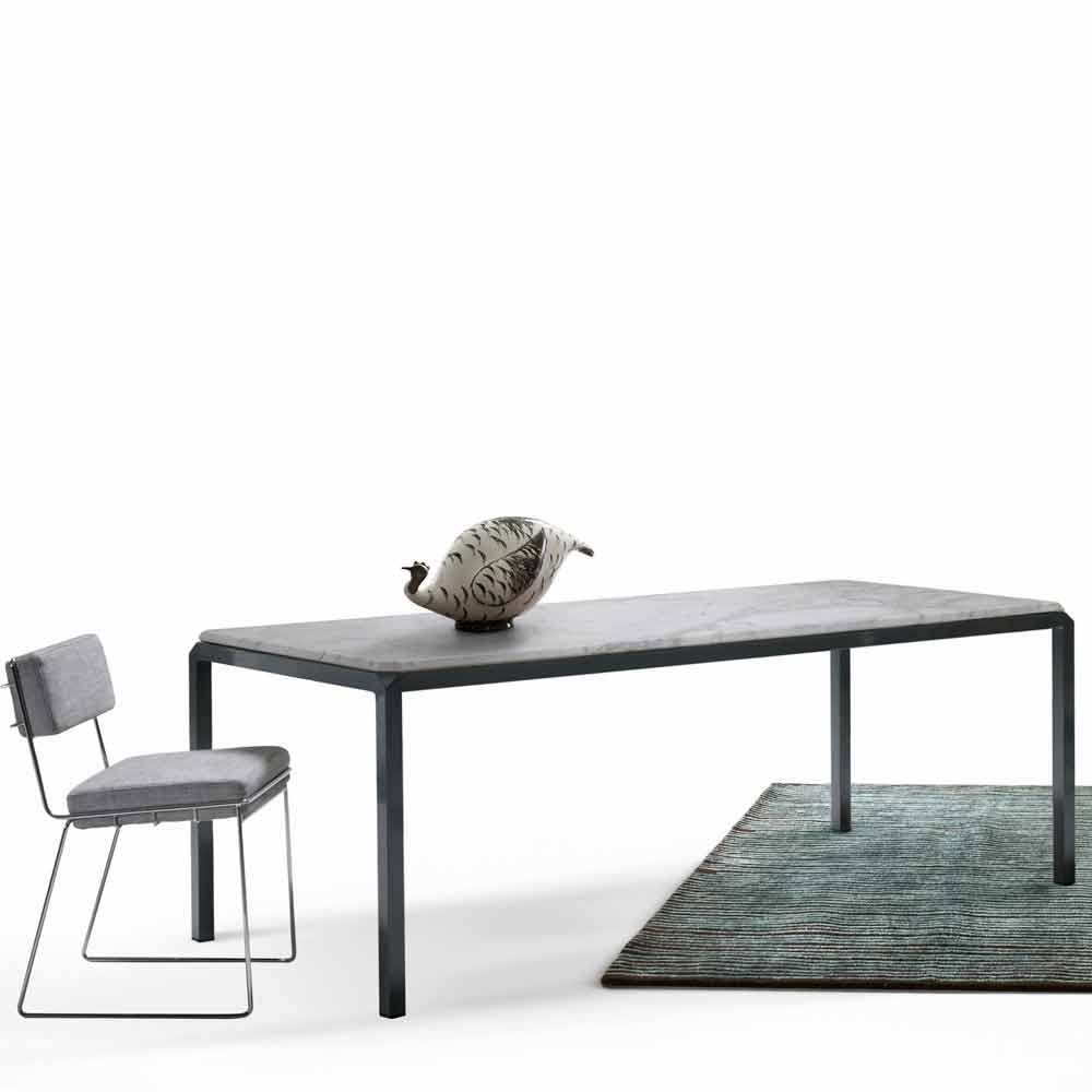 The meticulous attention to detail, the quality of workmanship, the contrast between the iron structure and the marble top identifies the Bebop table.
