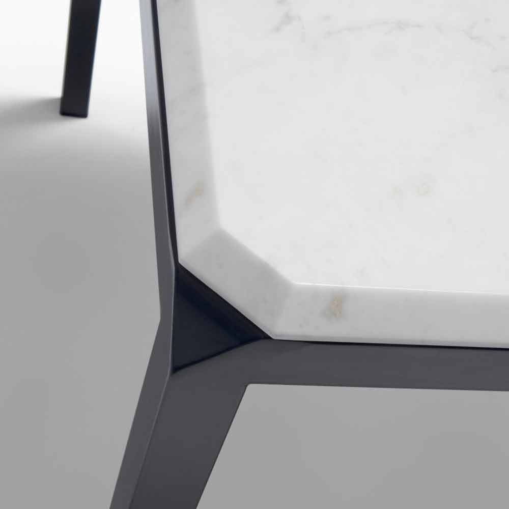 Base in pearly black painted steel and top in white Michelangelo marble.