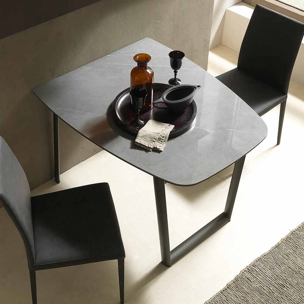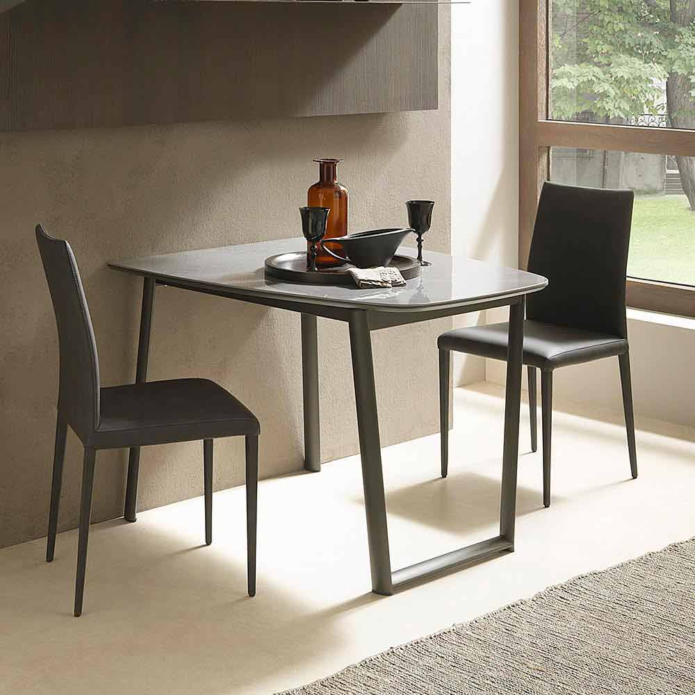 Extendable dining table up to 170 cm in metal with ceramic top Made in Italy.