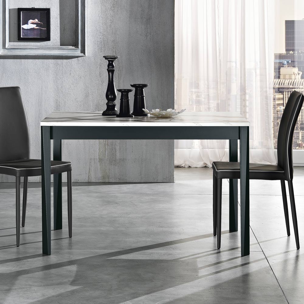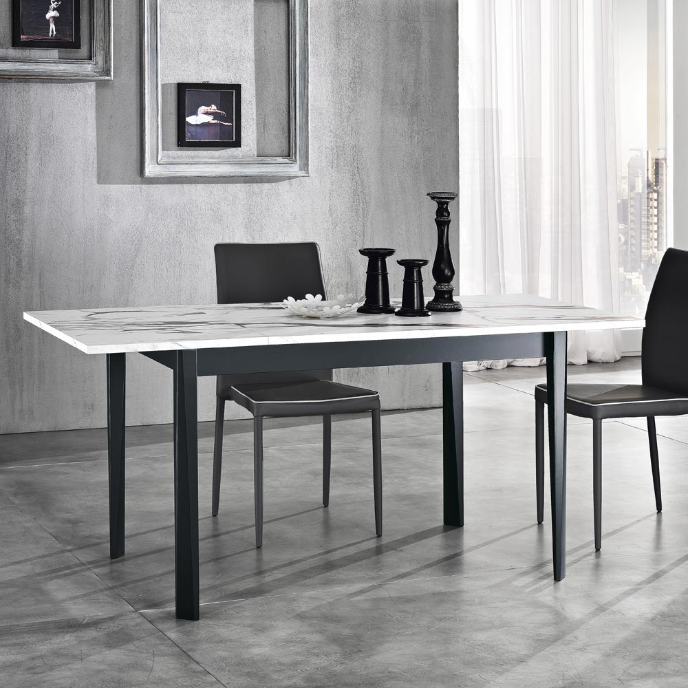 Extendable dining table in melamine and solid wood Made in Italy.