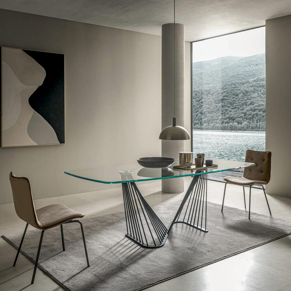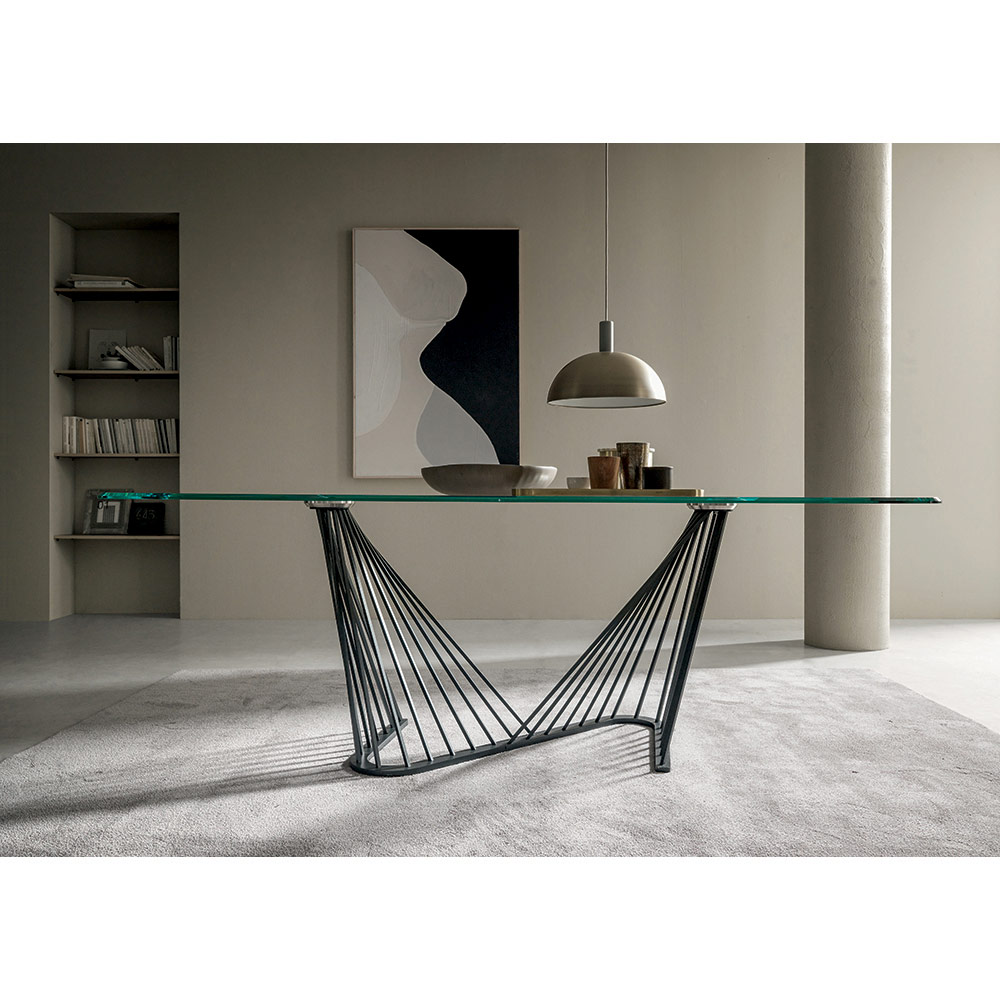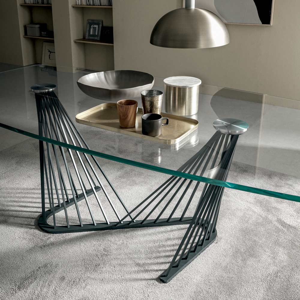Dining table in transparent glass and base with metal ropes, 2 sizes made in Italy.