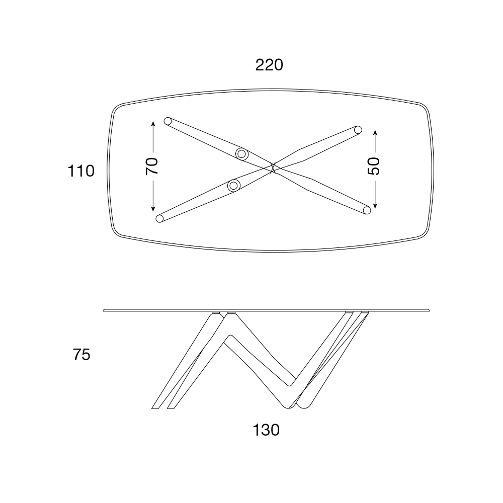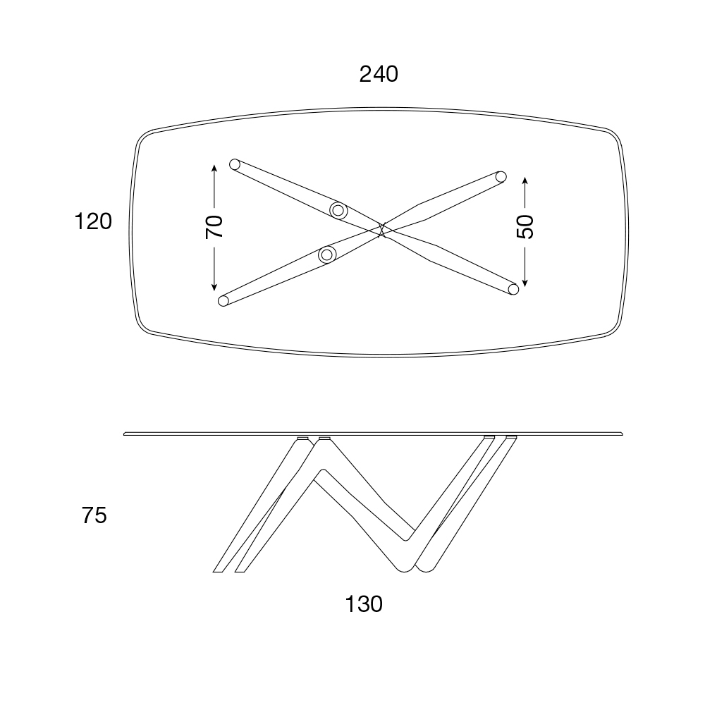 Its peculiarity is given by its dynamic and innovative image both in terms of aesthetics and functionality: the structure intertwines to lightly support the top, giving it a sculptural and refined appearance.