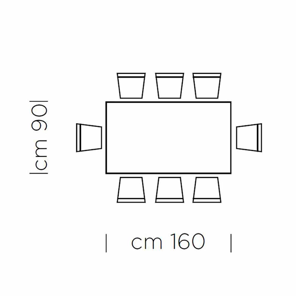 - L 160 x D 90 x H 75.5 cm (8 seats);