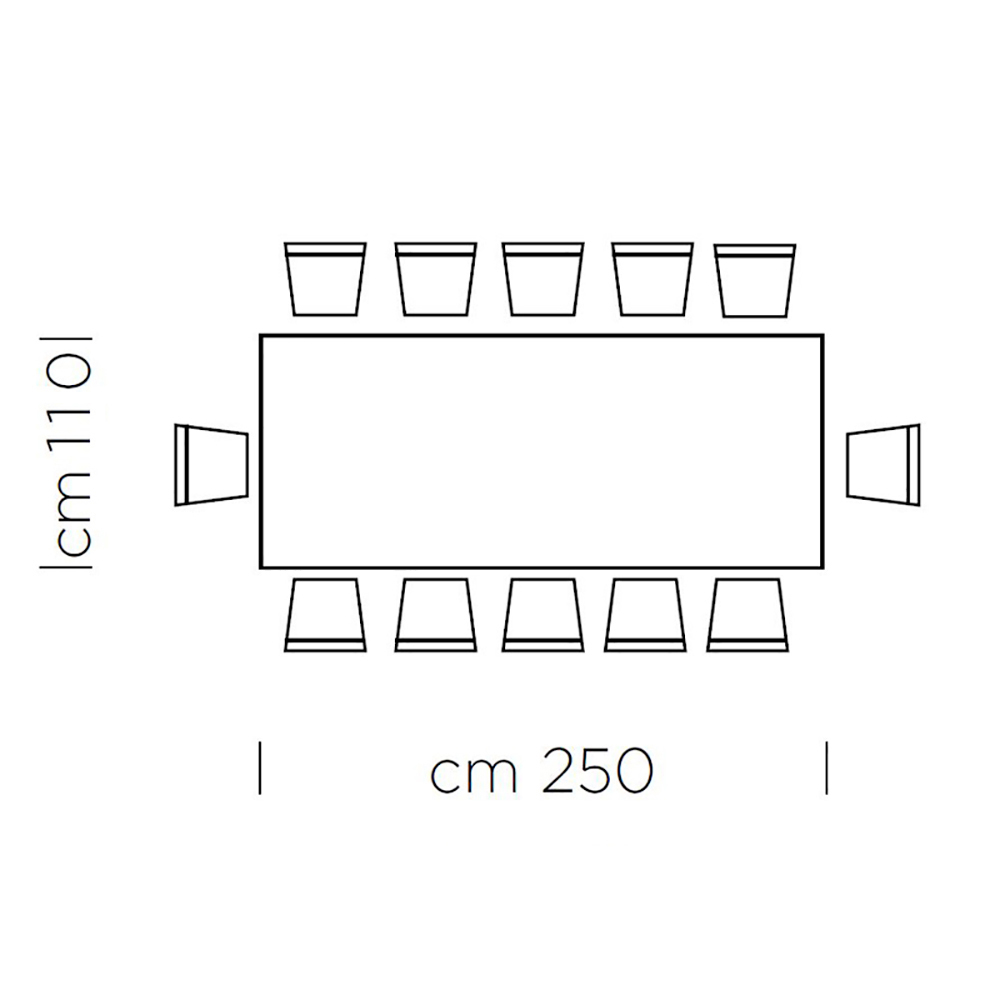 - L 250 x D 110 x H 75.5 cm (12 seats).