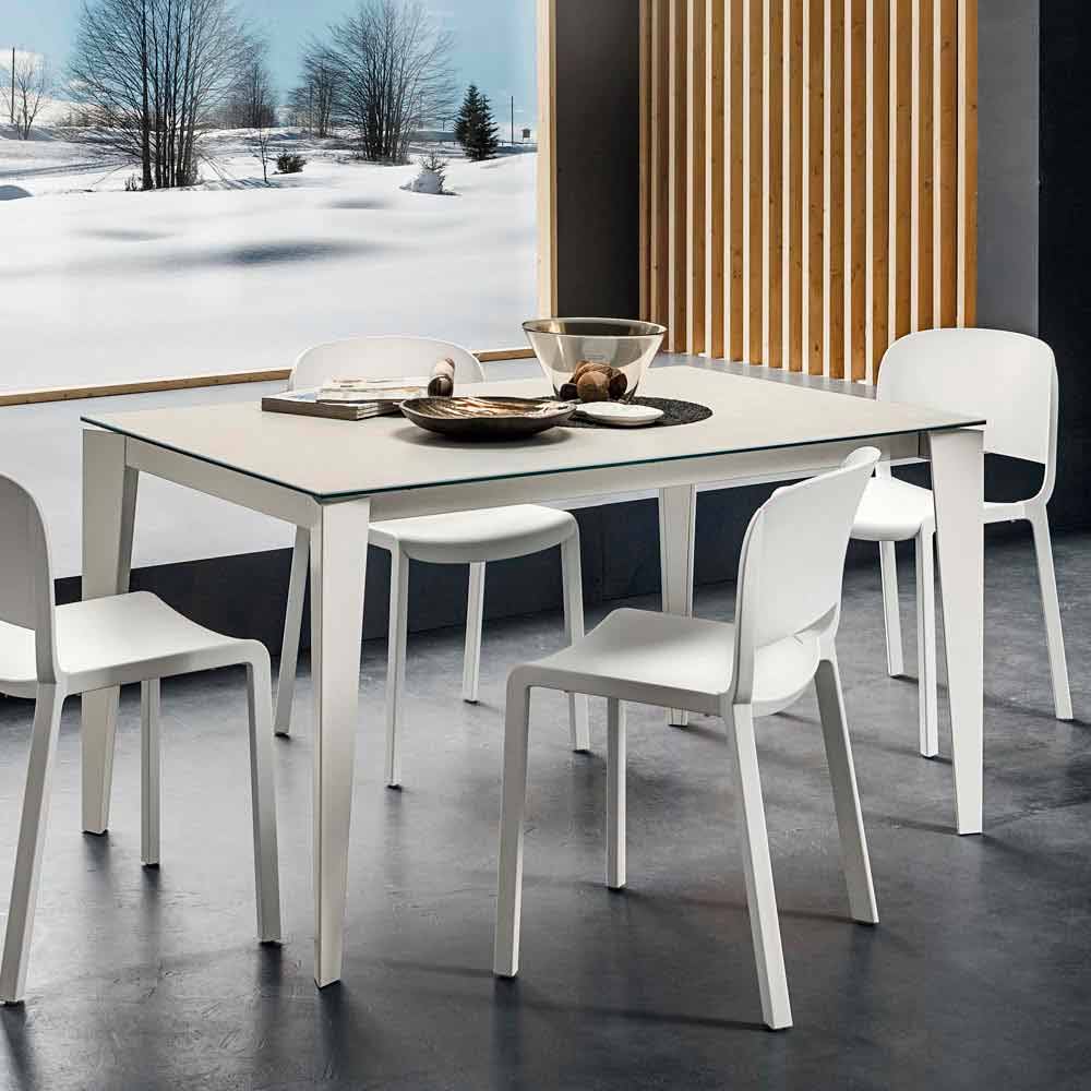Kitchen table in laminam with structure in lacquered metal Made in Italy.