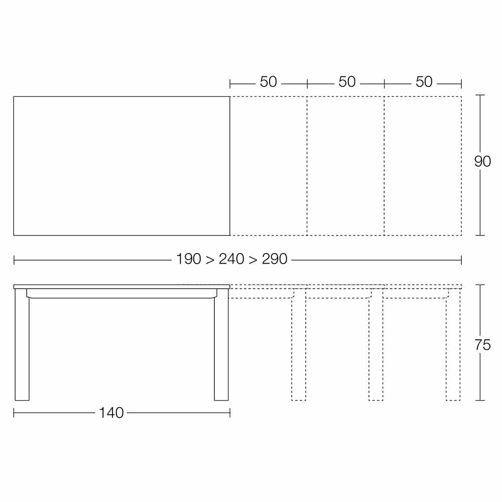 The top, the extension and the base of the table can be customized with different sample finishes. For information, contact us using the "