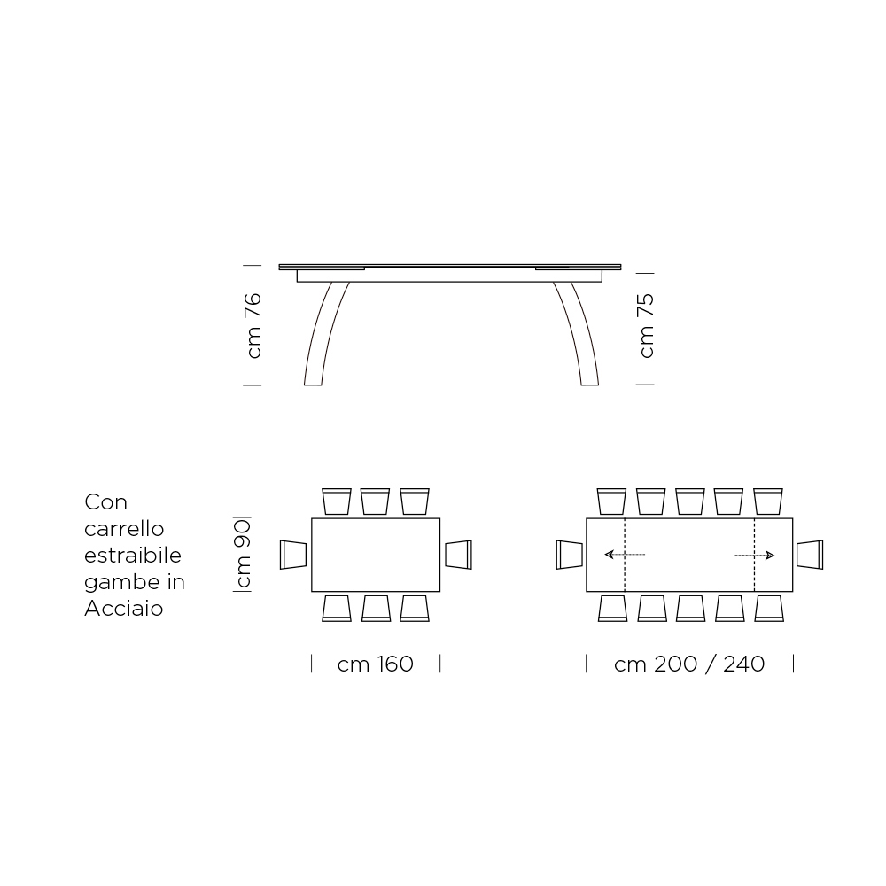 L 160/240 x D 90 x H 78 cm (8/12 seats);