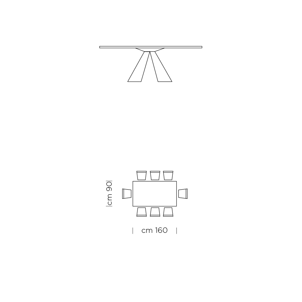 • L 160 x D 90 x H 75.5 cm (8 seats);