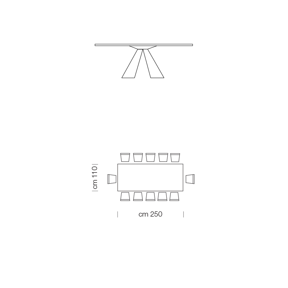 • L 250 x D 110 x H 75.5 cm (12 seats).