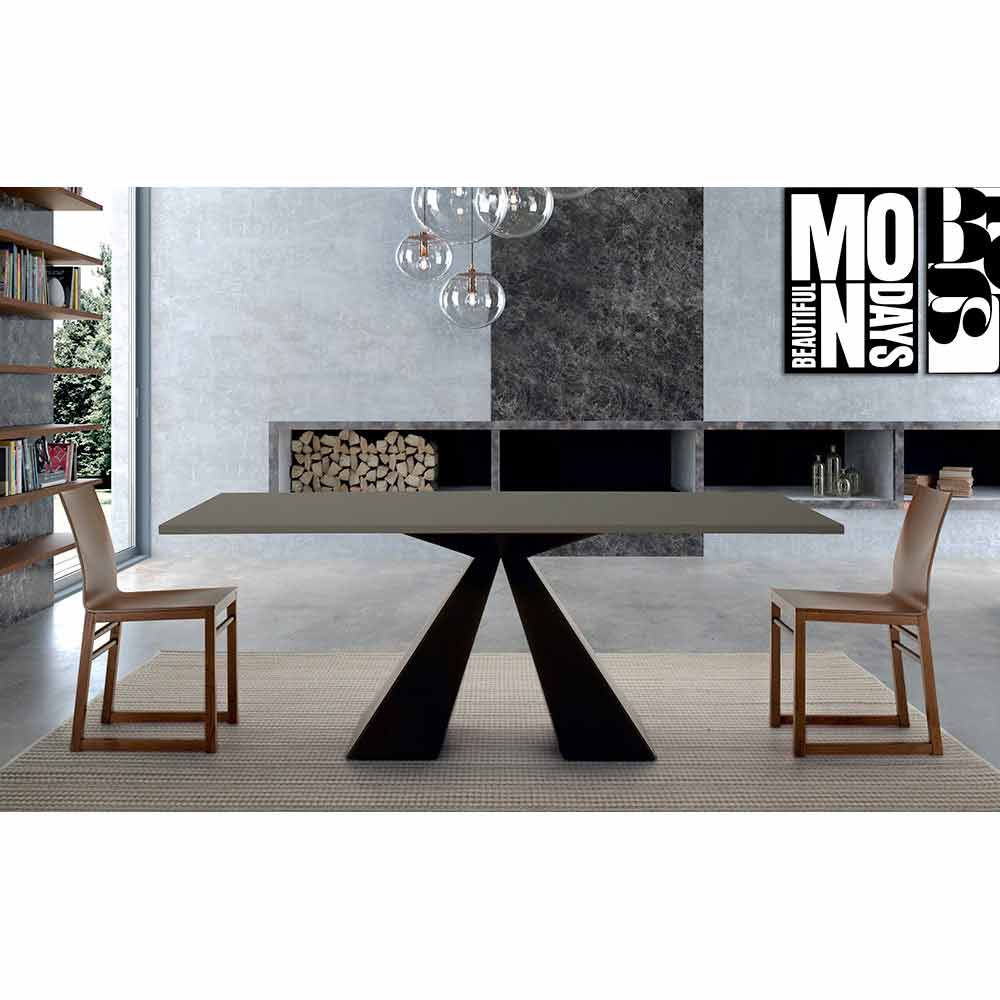 Dining Table with Fenix Top and Steel Base Made in Italy - Dalmatian