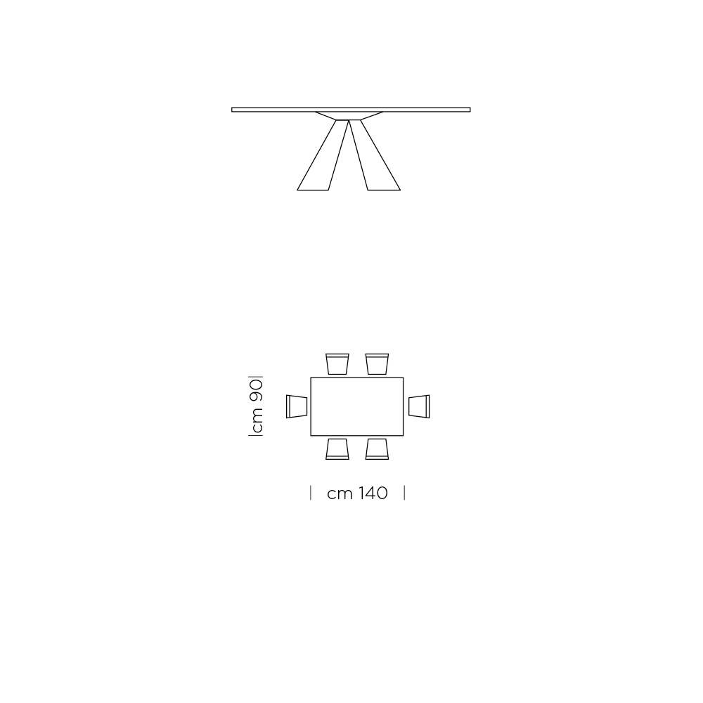 • L 140 x D 90 x H 75.5 cm (6 seats);