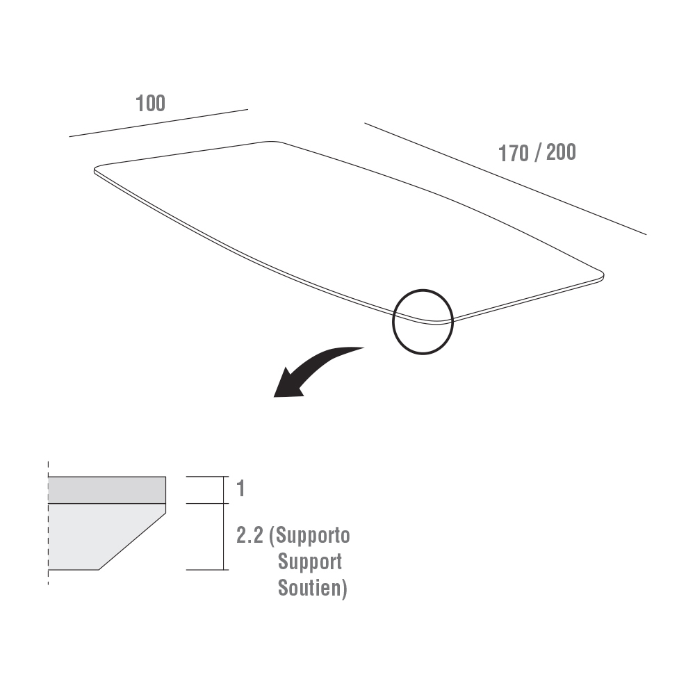 • W 200 x D 100 x H 76cm.
