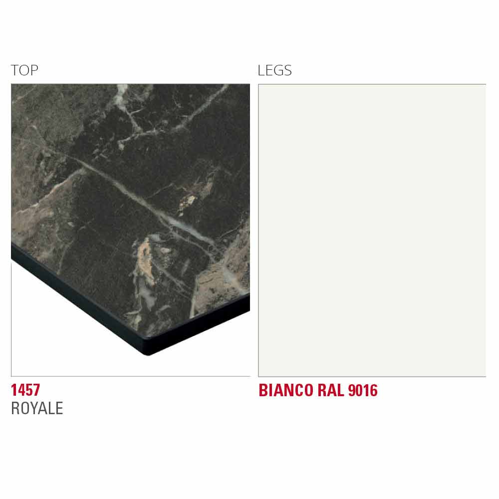 Dining table with stratified hpl top (thickness 10 mm) stratified in a barrel shape and supported on a mdf plate and metal legs painted with epoxy powders in a white finish. Made in Italy with high quality raw materials , this piece of furniture offers excellent resistance to chemical agents, abrasions and scratches while also ensuring a solid and robust surface capable of maintaining its aesthetic characteristics unchanged over time. In addition, the vast range of finishes proposed, which range from wood effect to stone up to a marble texture, allowing to give different solutions that can meet tastes and needs in an exclusive and refined way. The metal base, on the other hand, gives an original and creative element, completing the look of the table with a touch of modernity.