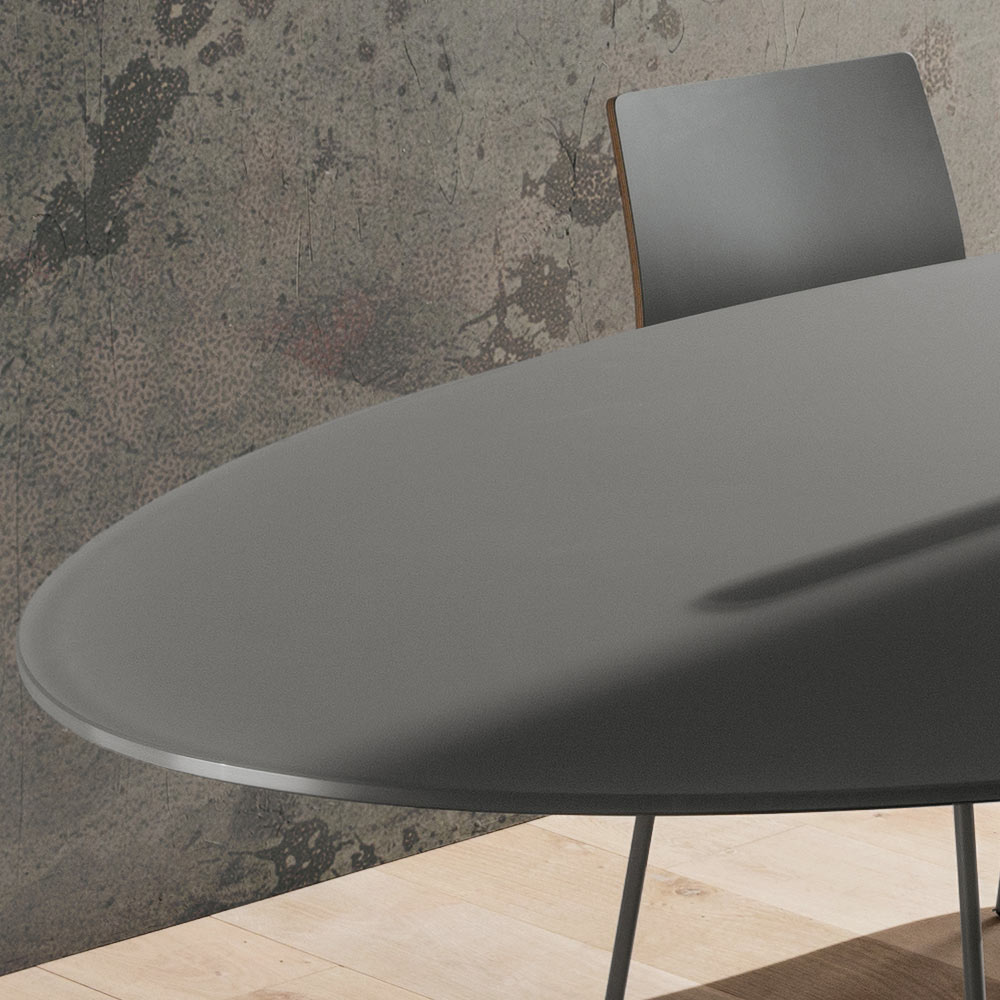 Dining table made in Italy with oval top in tempered glass (thickness 12mm) matt lacquered and base in mineral marble (synthetic marble), a material obtained by mixing marble powders. A piece of furniture characterized by an extremely original and almost futuristic aesthetic that manages to make every space of your home unique and modern. Its strong point is the base with soft and creative lines that marries perfectly with the oval top to give life to a splendid harmony of shapes . To the modernity of the design is added the touch of elegance given by the glass and the particular opaque finish which further increase its value. This wonderful table also has a strong functional side given by the use of high quality raw materials and 100% Italian workmanship that allow us to offer a solid and resistant product as well as being unique and with a strong visual impact.