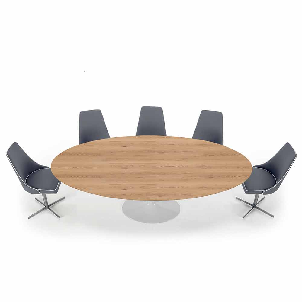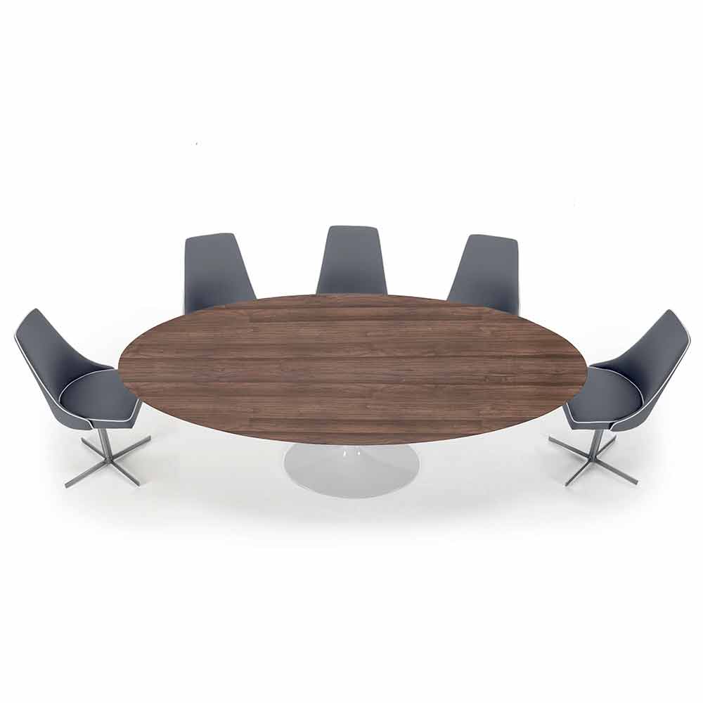 Oval dining table made in Italy in laminate and aluminum, luxury.