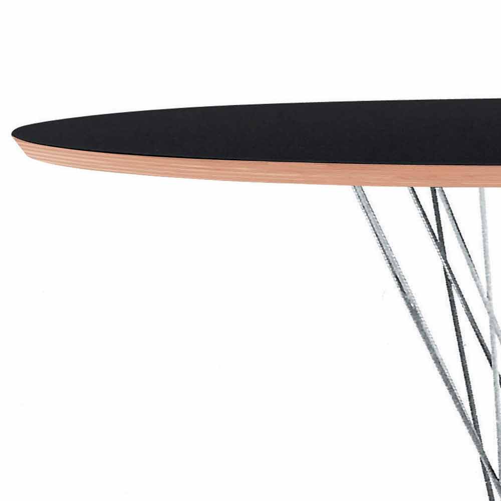 Dining table made through a 100% Made in Italy production with round top in black laminate, black base and chromed steel structure. A modern and essential design characterized by lines and shapes that contribute to giving versatility to the product and an exclusive touch to the surrounding environment. Its strong point is represented by the particular conformation of the base which enriches the table with personality and character while ensuring a solid and resistant product while the laminate top emphasizes its elegance and modernity, giving life to a piece of furniture. sober and refined furniture capable of characterizing any stylistic situation with a sense of refinement and innovation .