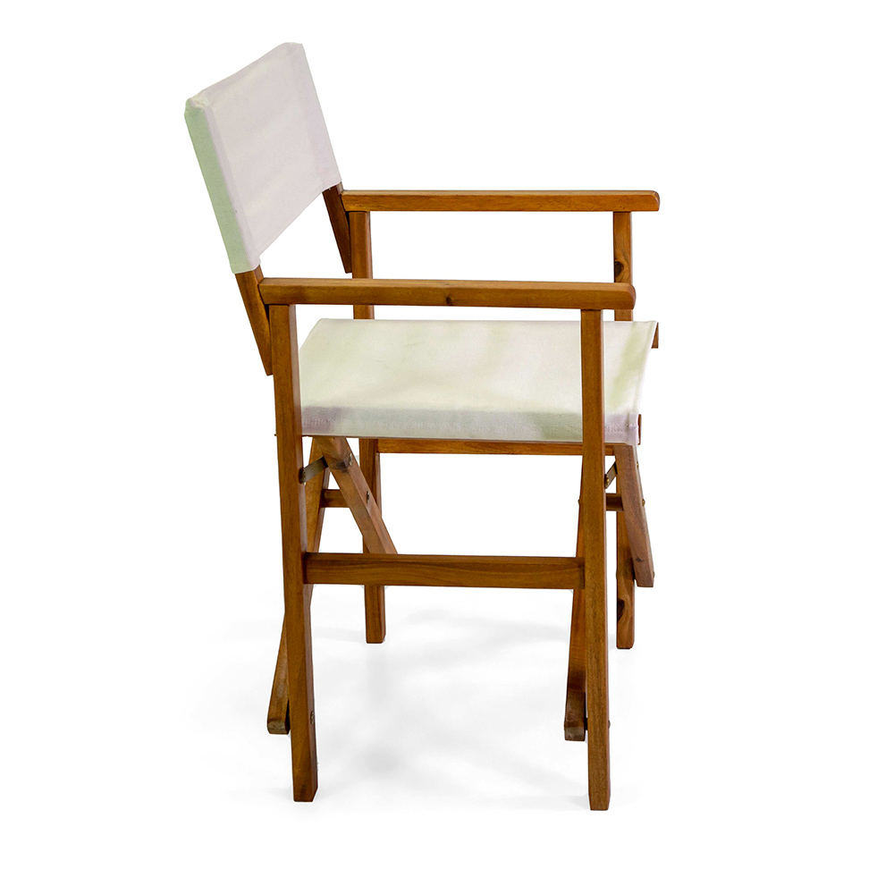 Discover the wooden director's chair , which combines functionality and stylish practicality for timeless comfort. This classic piece of furniture, crafted with a sturdy wooden frame, features smooth armrests and a fabric seat and backrest, offering maximum comfort and support.