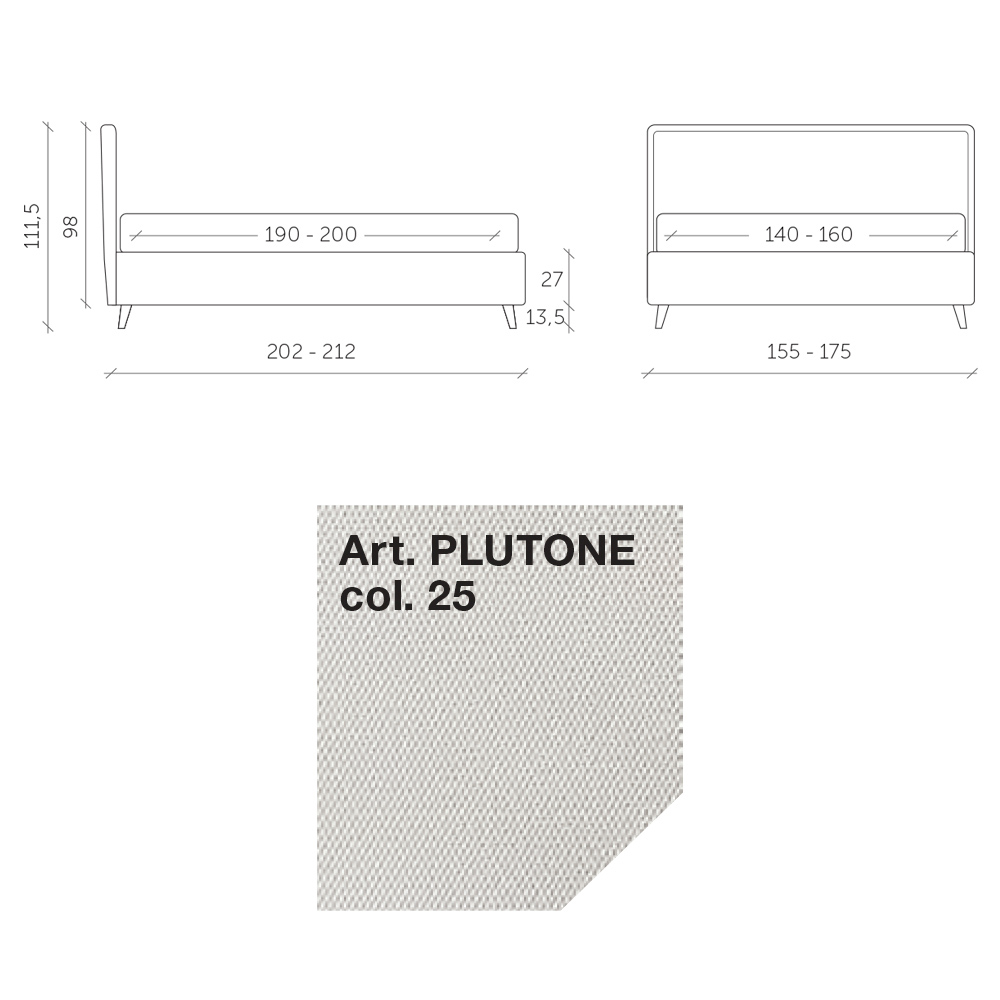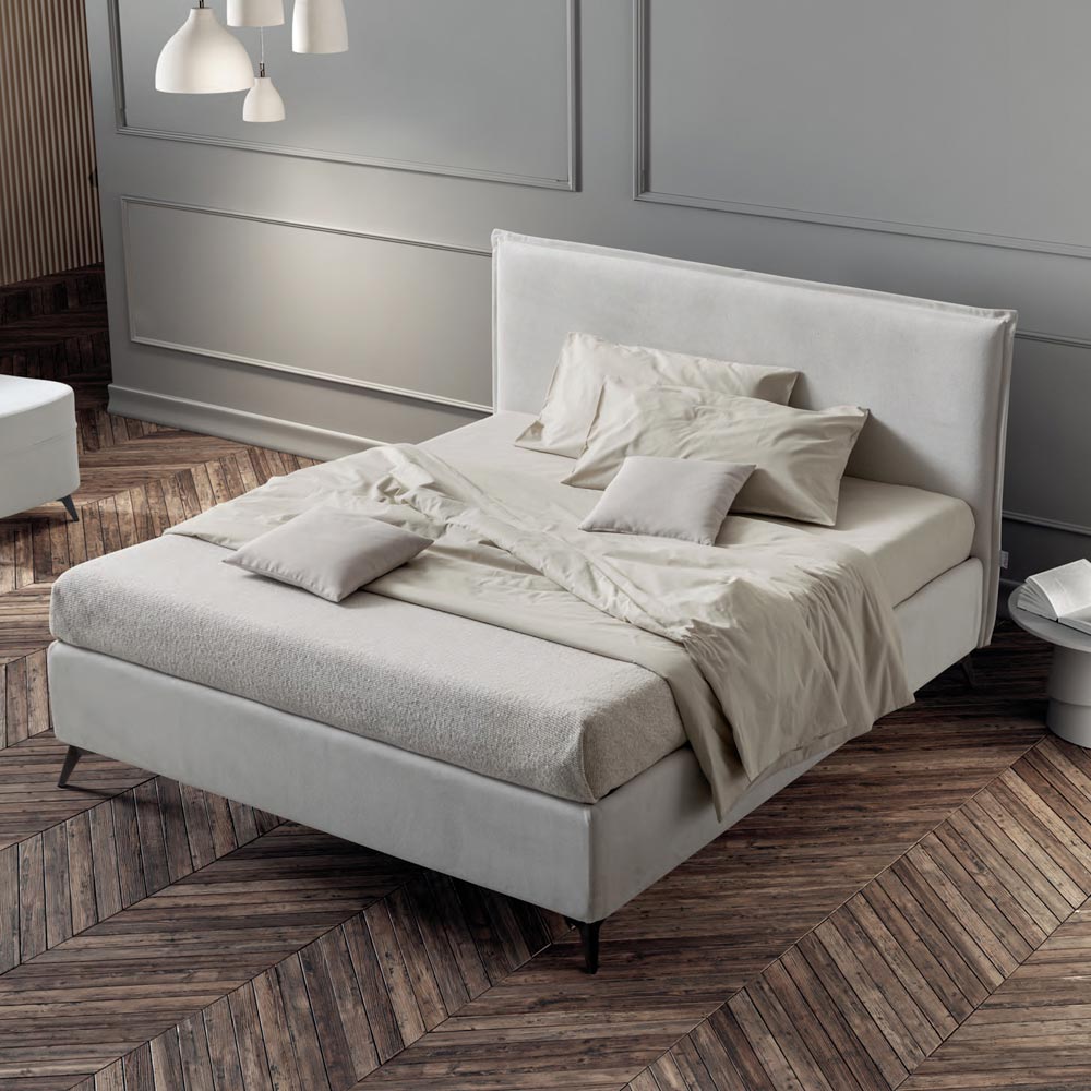 Double Bed 160x190 in Fabric with Metal Feet Made in Italy - Dreams