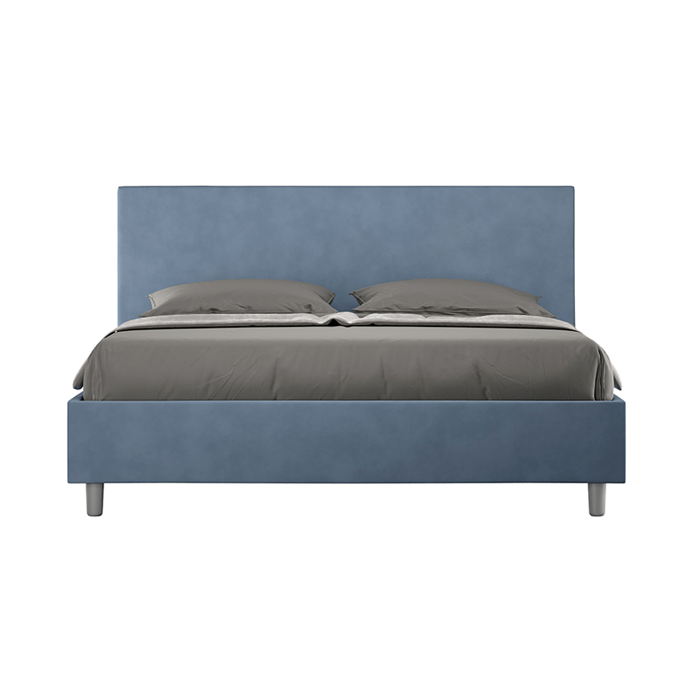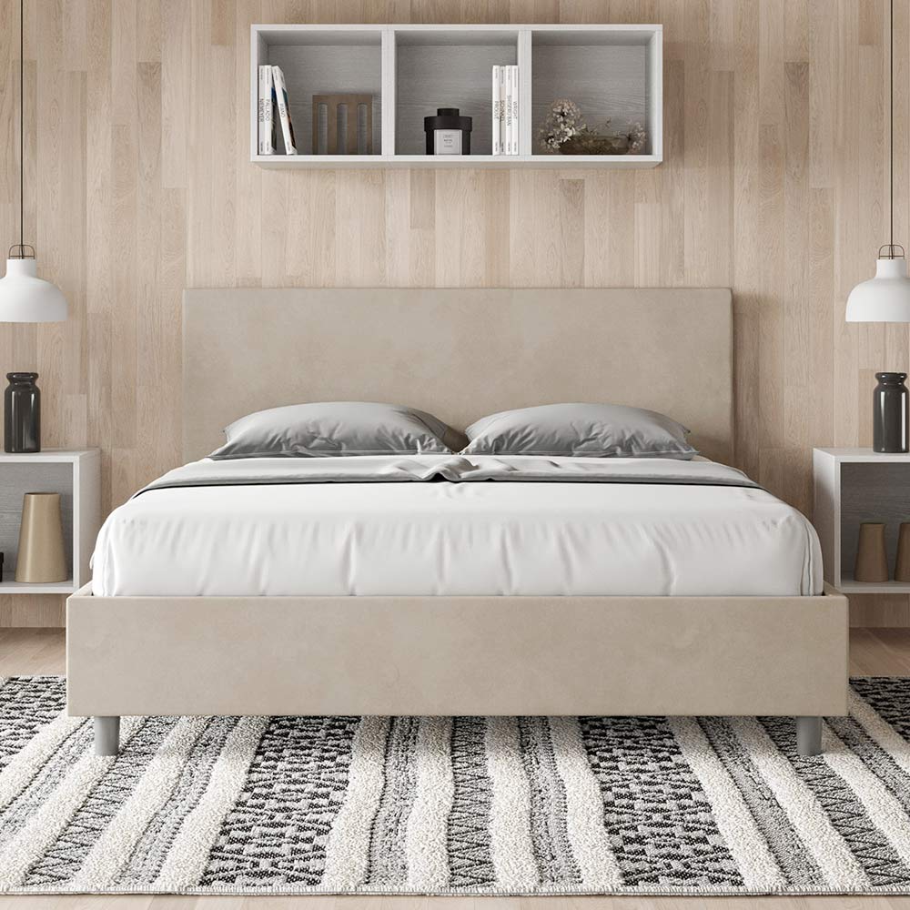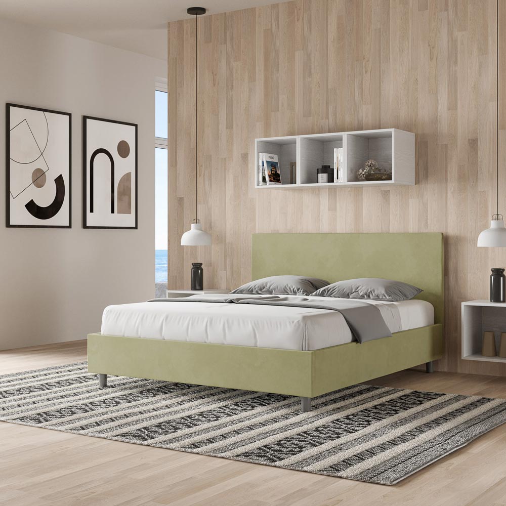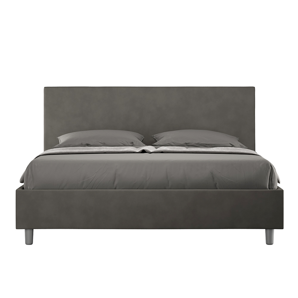160x200 cm padded double bed made of chipboard panels and covered in microfibre , entirely Made in Italy. This double bed features a padded bed frame and is an icon of understated yet elegant style. Featuring a microfiber headboard , this bed blends seamlessly into any space, adding a distinctive touch of class and luxury, quintessentially Italian. Maintenance is easy: simply wipe it with a microfiber cloth to preserve its beauty over time.