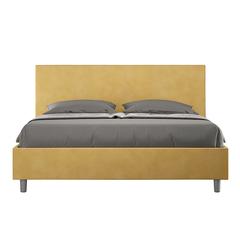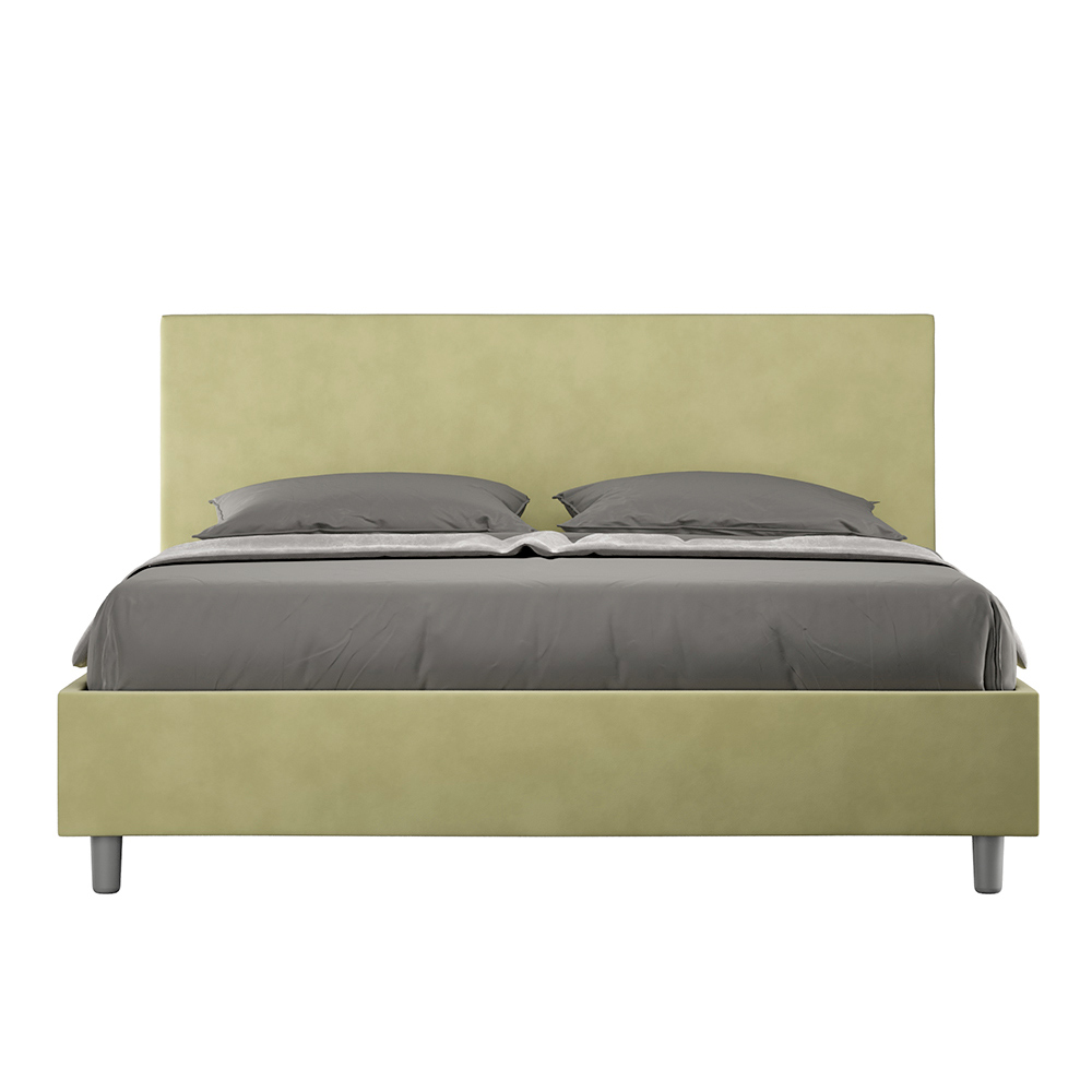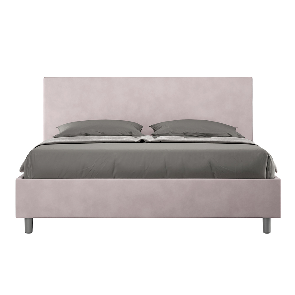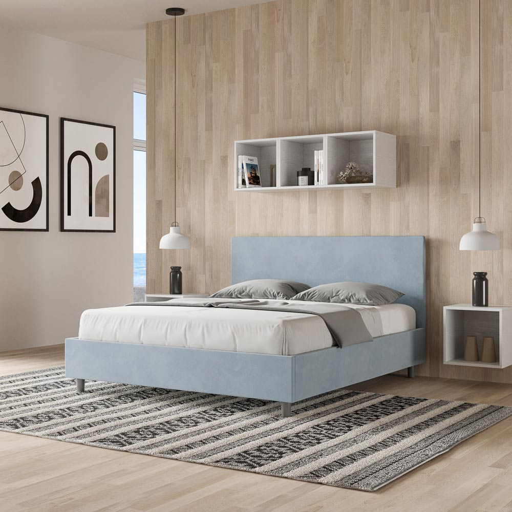 160x200 cm padded double bed made of chipboard panels and covered in microfibre , entirely Made in Italy. This double bed features a padded bed frame and is an icon of understated yet elegant style. Featuring a microfiber headboard , this bed blends seamlessly into any space, adding a distinctive touch of class and luxury, quintessentially Italian. Maintenance is easy: simply wipe it with a microfiber cloth to preserve its beauty over time.