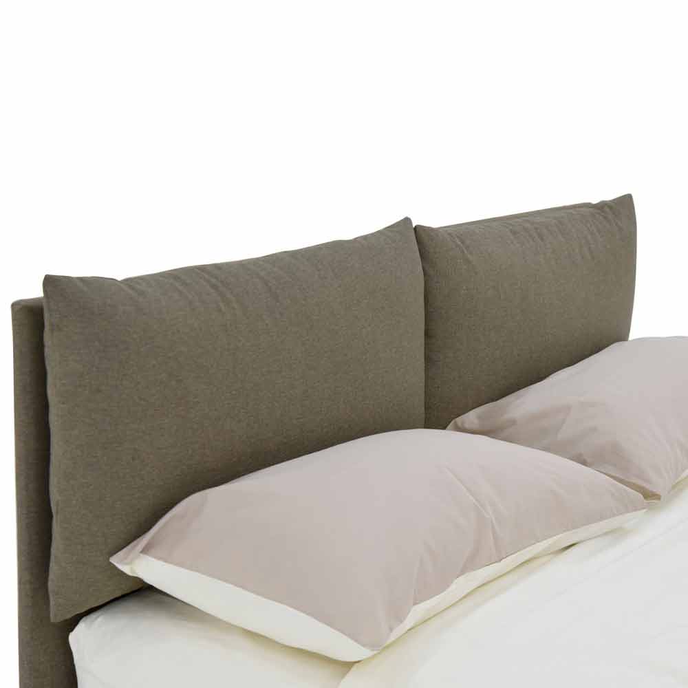 Its structure consists of a bed frame (H. 27 cm), a headboard and two cushions completely covered in fabric and
