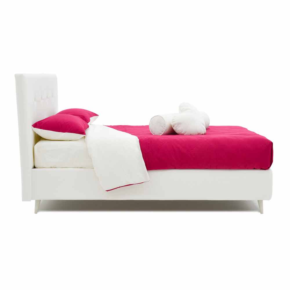 Design double bed with white wooden feet and Made in Italy imitation leather covering.