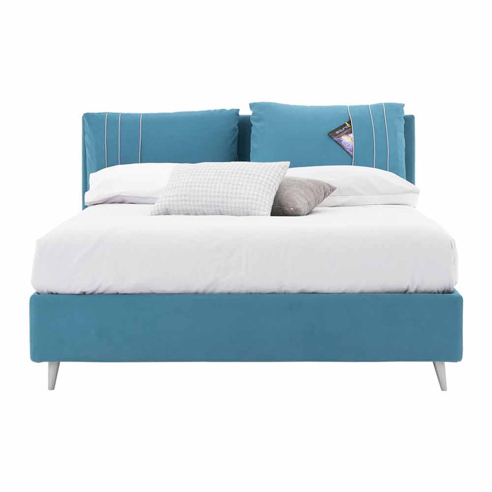 Double bed with container covered in removable fabric available with headboard in three Made in Italy variants.