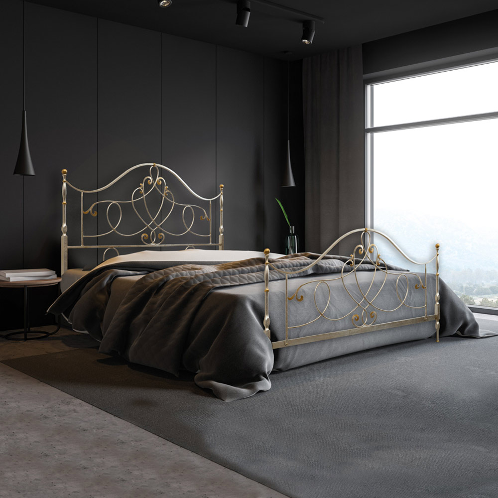Double bed with iron headboard Made in Italy
