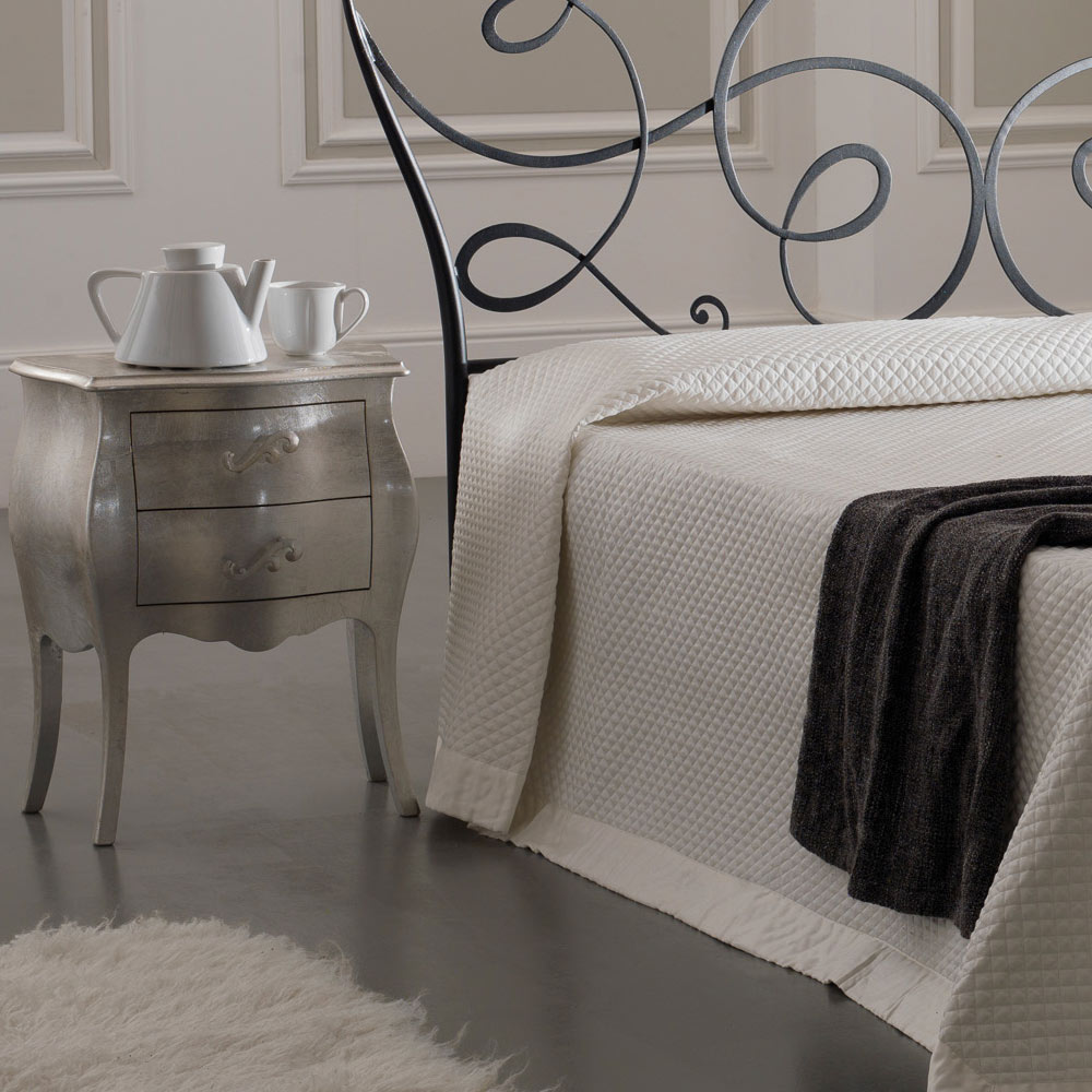Double bed with iron headboard and 2 bedside tables Made in Italy