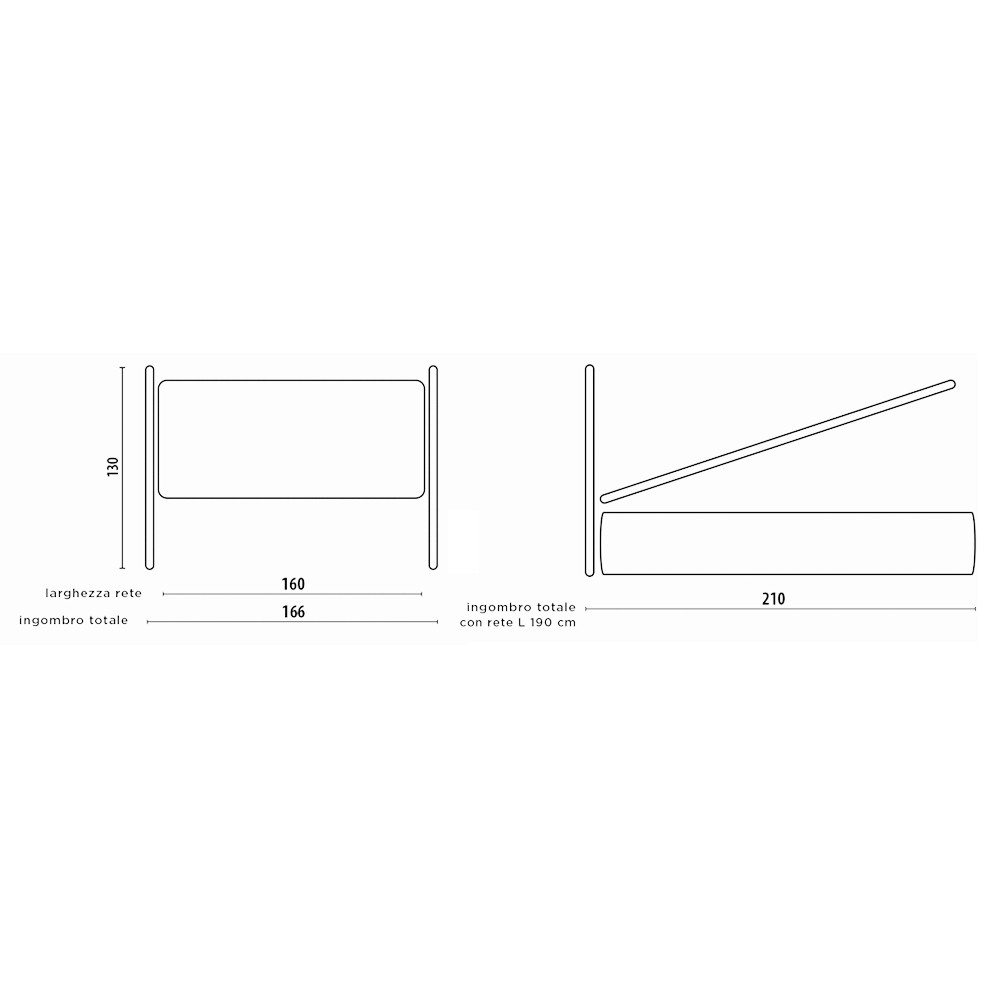 Dimensions:- 166 x 210 x height 130 cm - bed base 160x190 cm