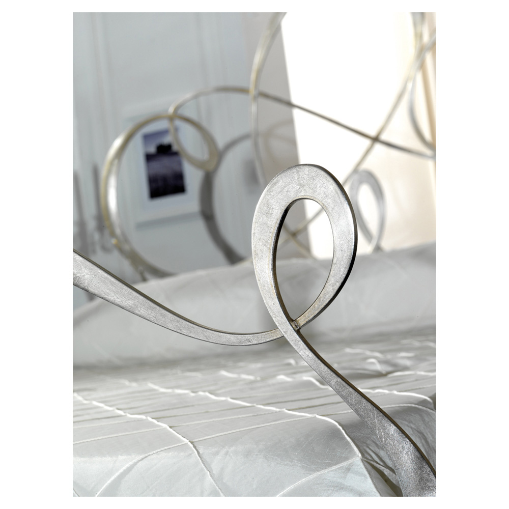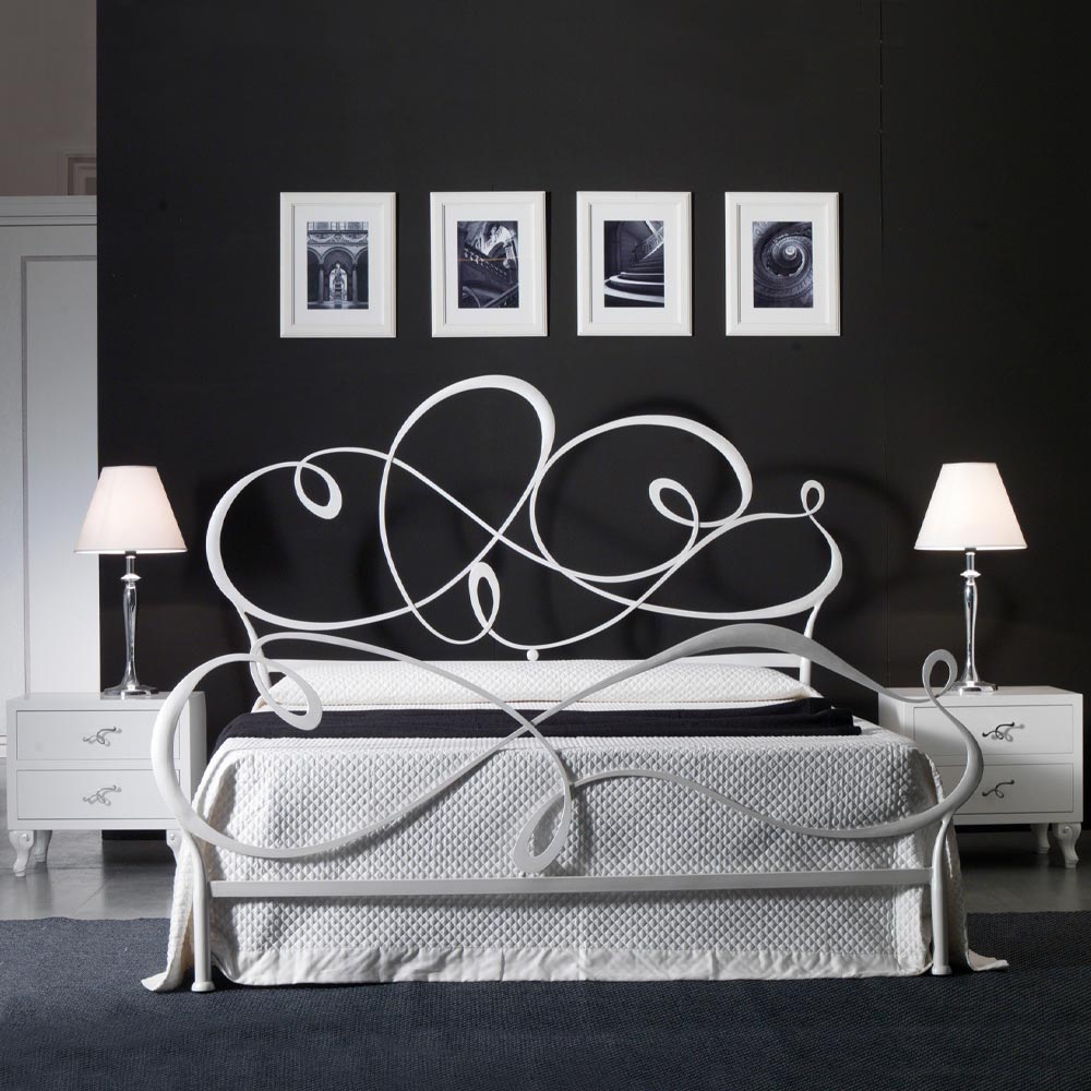 Double bed made with coordinated headboard and footboard in 80% solid iron and 20% tubular and finished with powder or artisanal leaf painting.