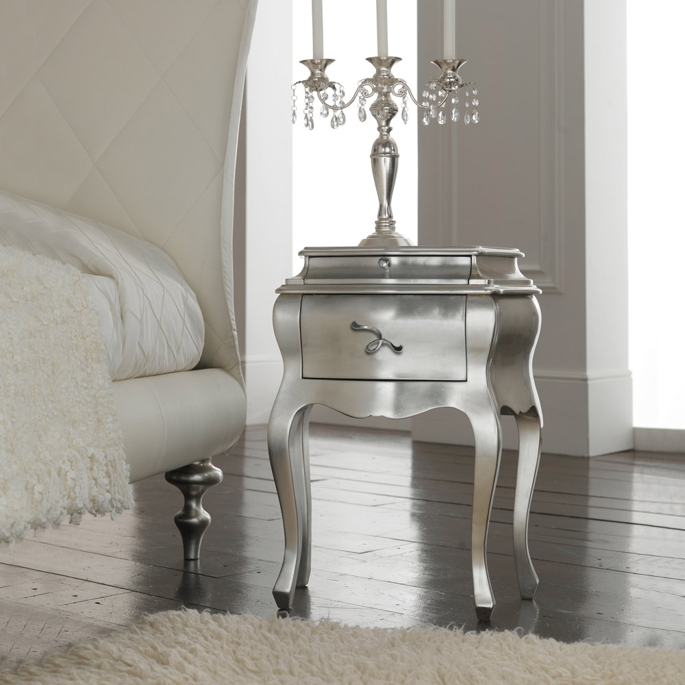 • silver leaf bed, silver leaf bedside tables