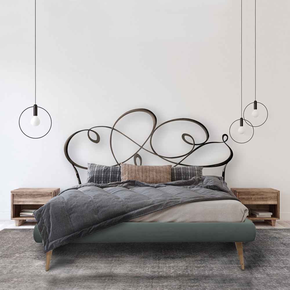 Double bed with iron headboard Made in Italy