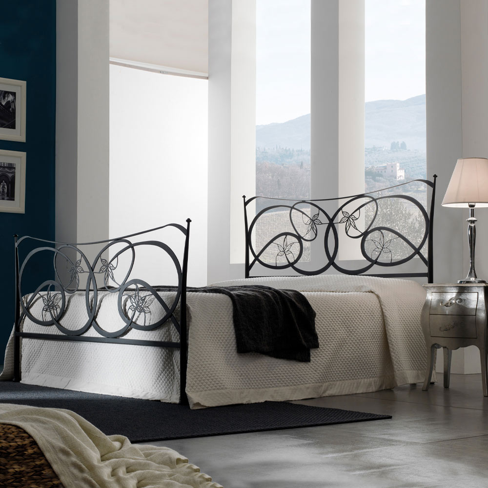 Double bed with iron headboard and 2 bedside tables Made in Italy