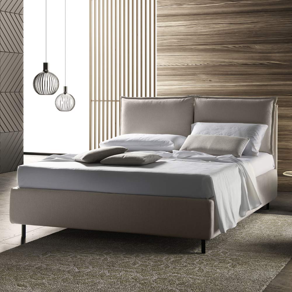 A contemporary idea of comfort that arises from the desire to create a furnishing solution that is as functional as it is elegant and modern. The simplicity of the bed frame and metal feet together with the originality of the headboard gives the aesthetics of the product a contemporary, refined and original touch , perfect for those seeking an avant-garde style without having to give up elegance and good taste.
