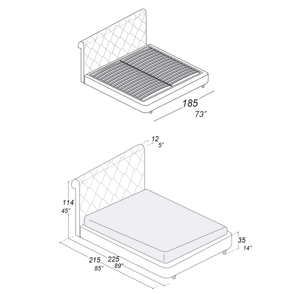 - length: 185 cm x depth: 225 cm x height: 114 cm - suitable for a 160x200 cm mattress