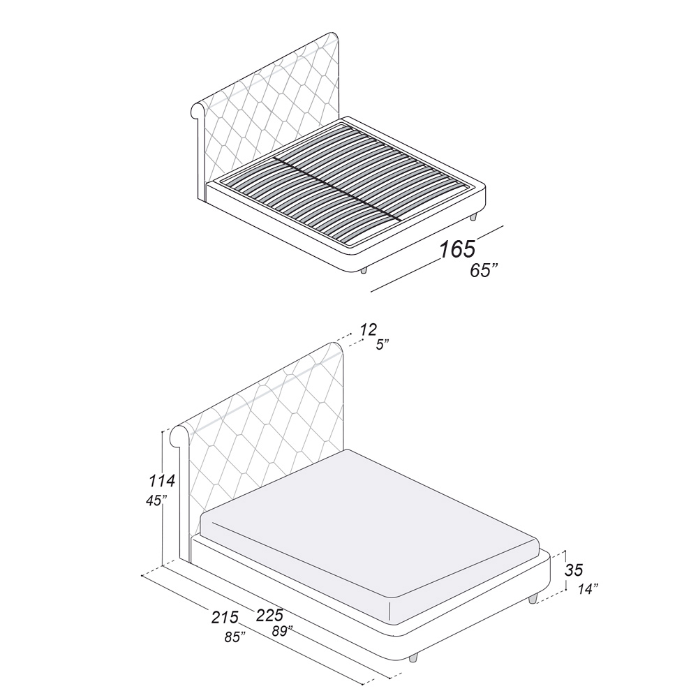 - length: 165 cm x depth: 225 cm x height: 114 cm - suitable for a 140x200 cm mattress