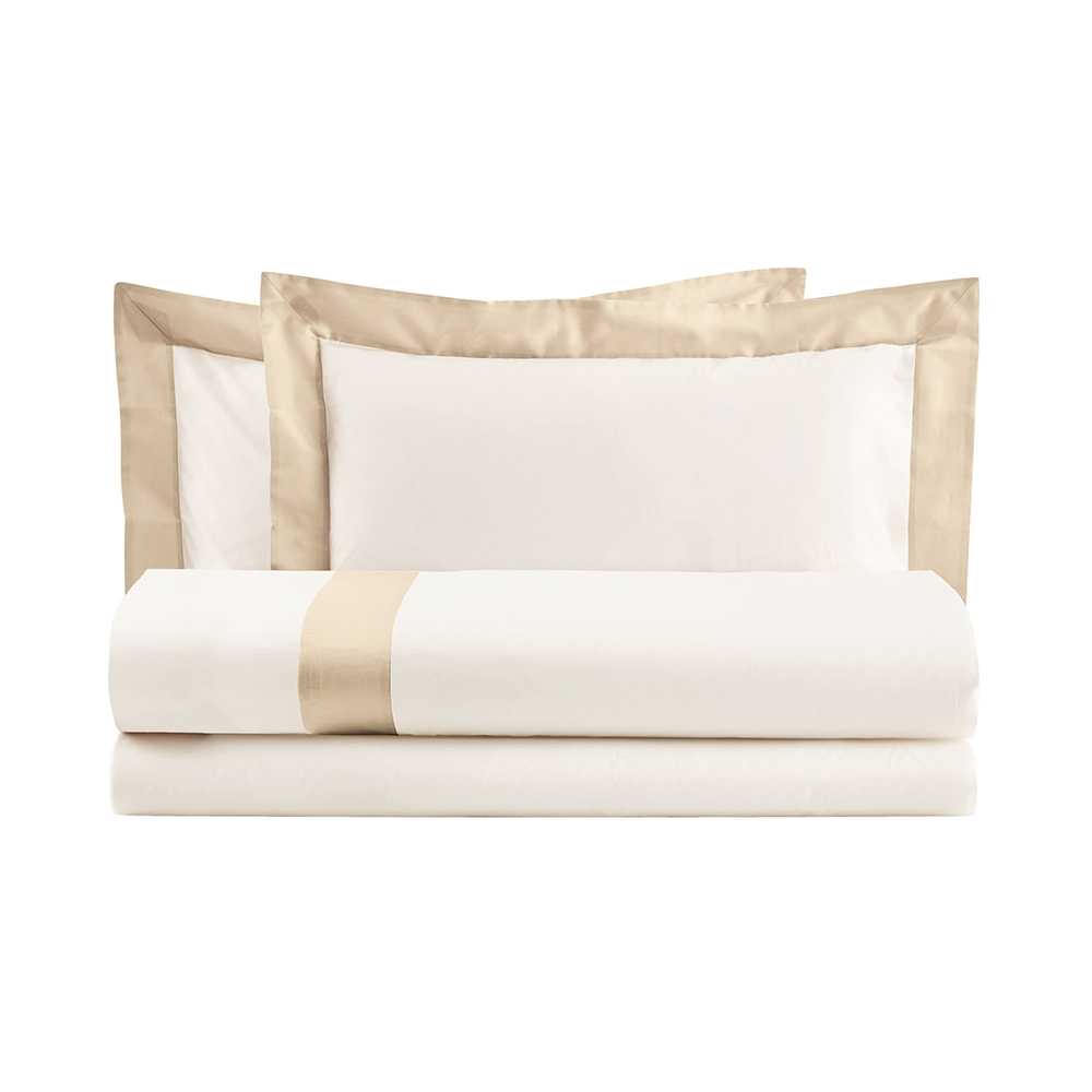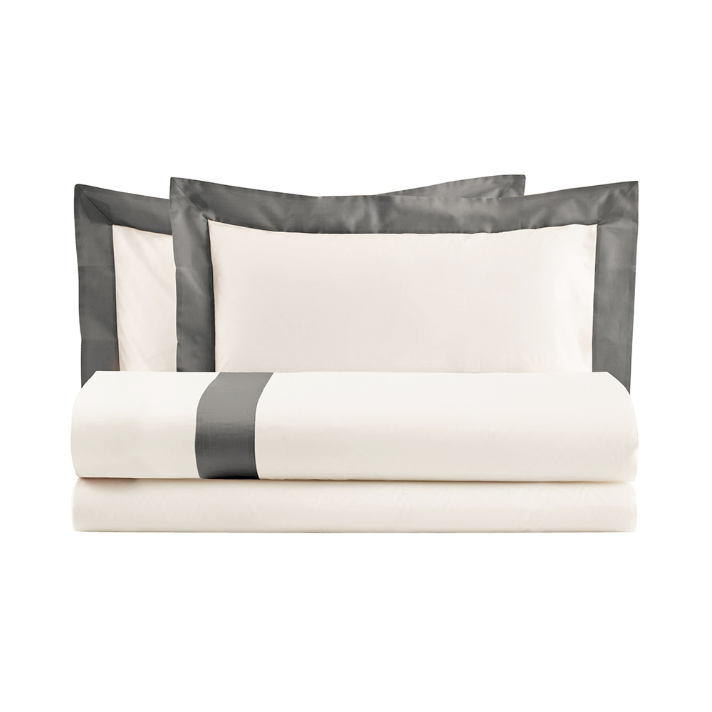 Duvet cover set in 100% 160 TC cotton and 10% 300 TC cotton sateen.