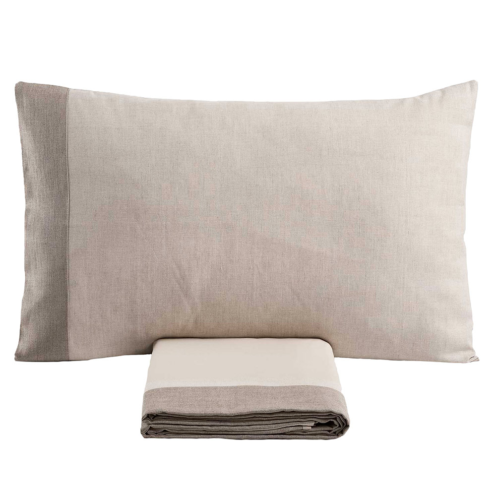Discover the double bed set made with a fine blend of 90% cotton and 10% linen , an ideal combination for those seeking maximum comfort combined with impeccable design. This unique composition combines the softness and breathability of cotton with the resistance and natural freshness of linen, offering a superior sleep experience in every season.