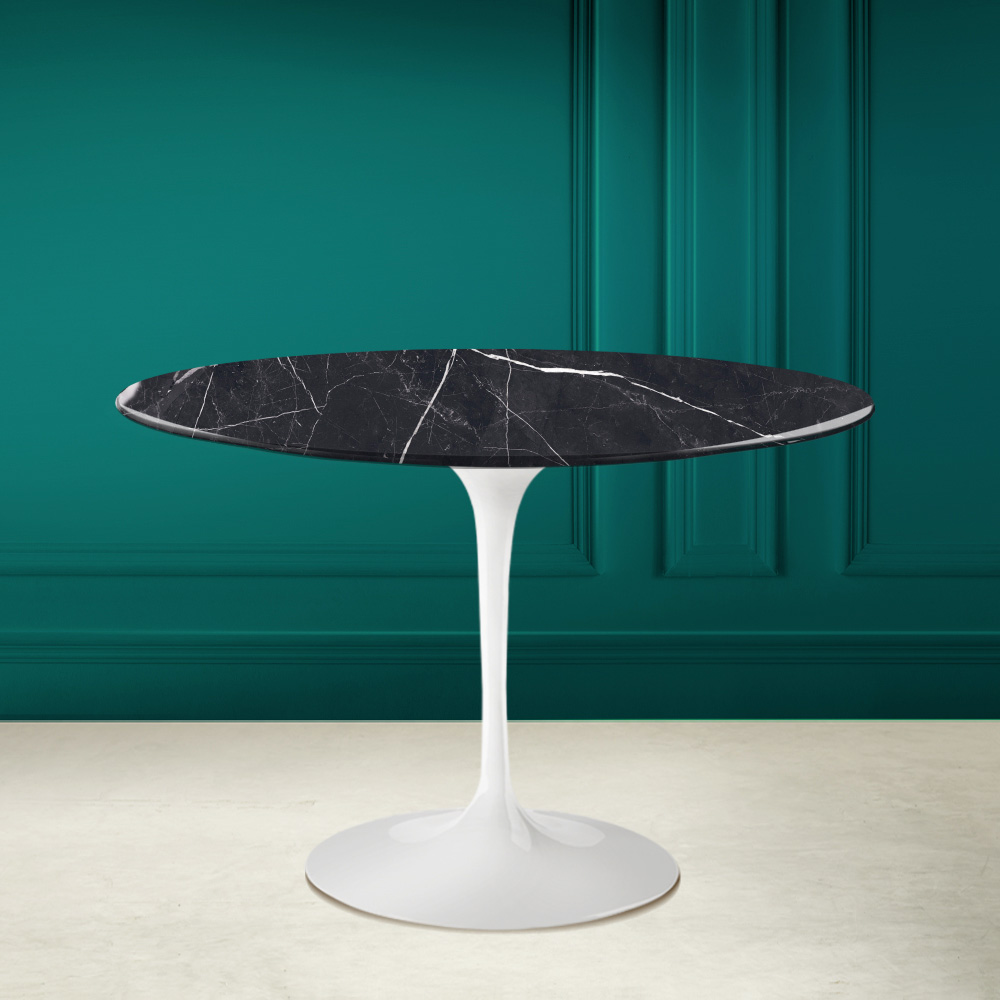 modern and lively veining that gives the table an original and refined touch and the polished aluminum of the base provides