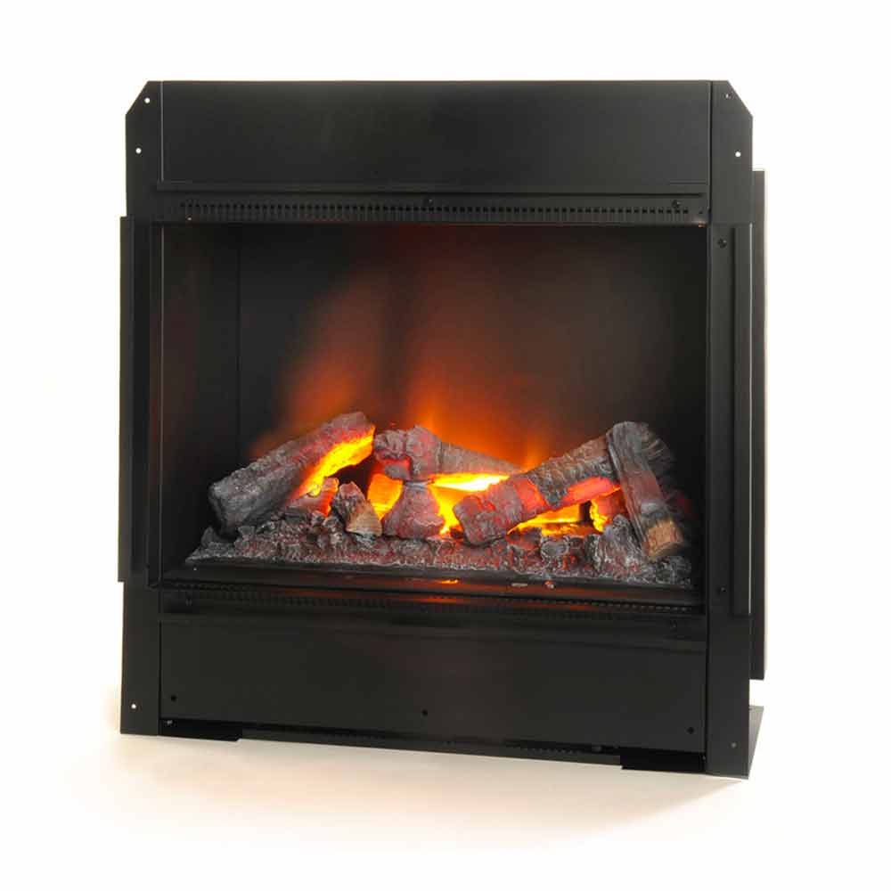 Electric hearth to be placed on the ground or built in, black or brick interior finish.