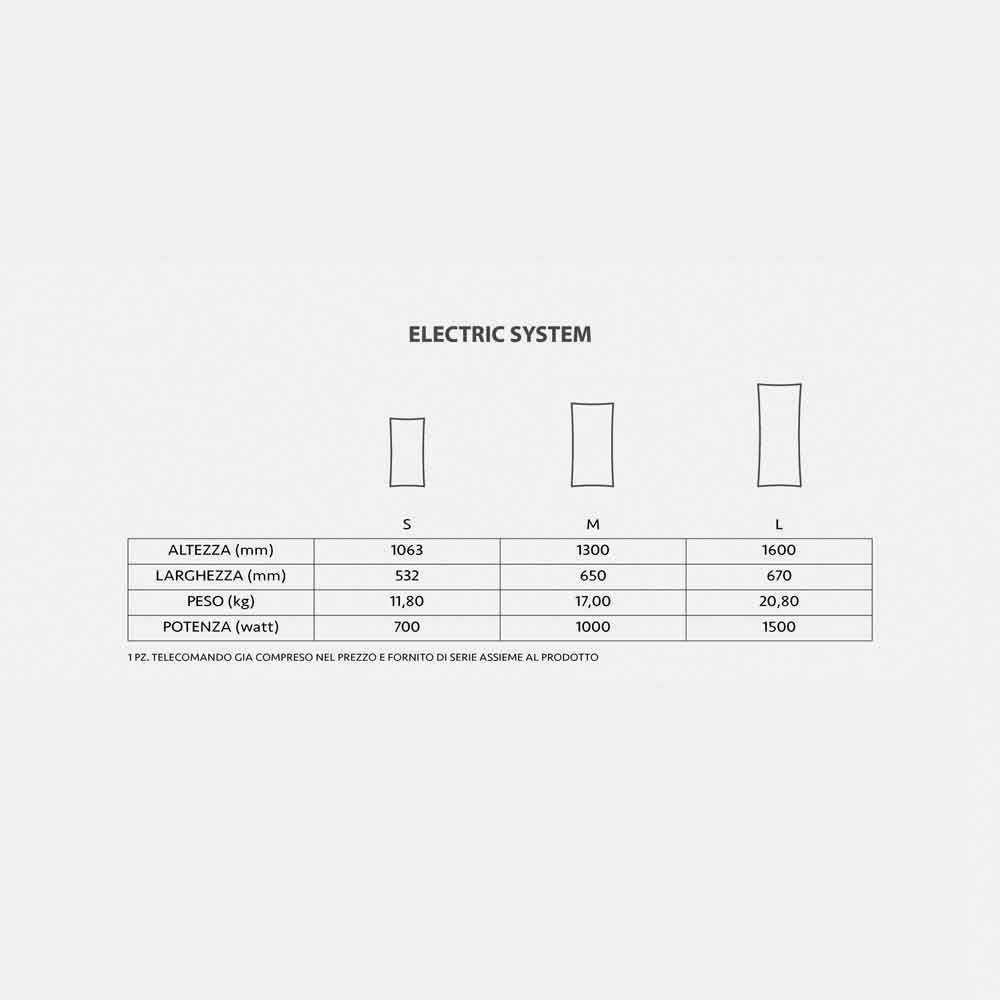 This product is equipped with a heating system that allows you to heat the environment mainly by radiation, this allows you to directly heat the elements present in the room which in turn reintroduce their heat into the environment. This procedure allows to have a comfortable ambient temperature with an air temperature that is much lower than traditional systems, and one degree less of the air temperature corresponds to a saving of at least 7% of energy consumption.