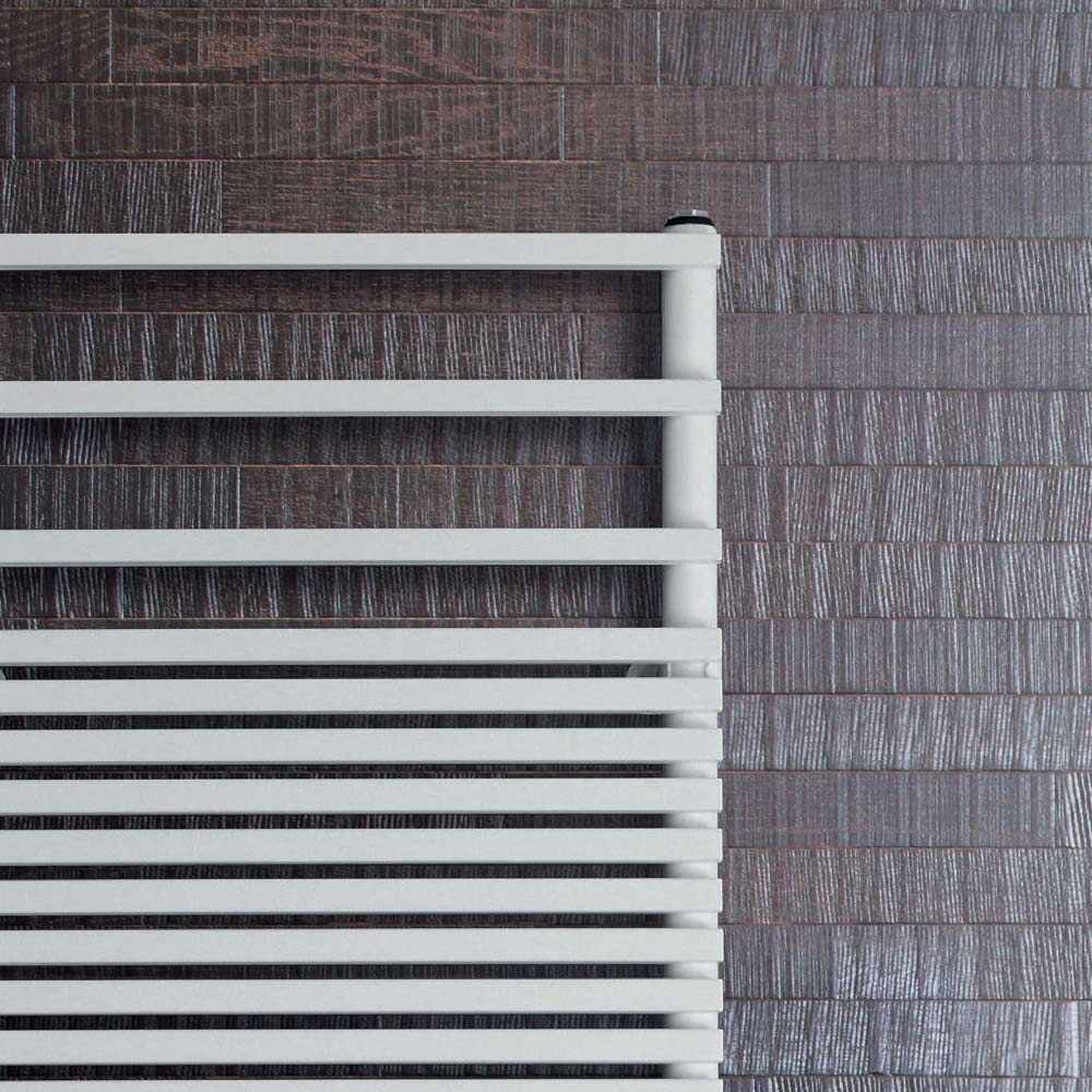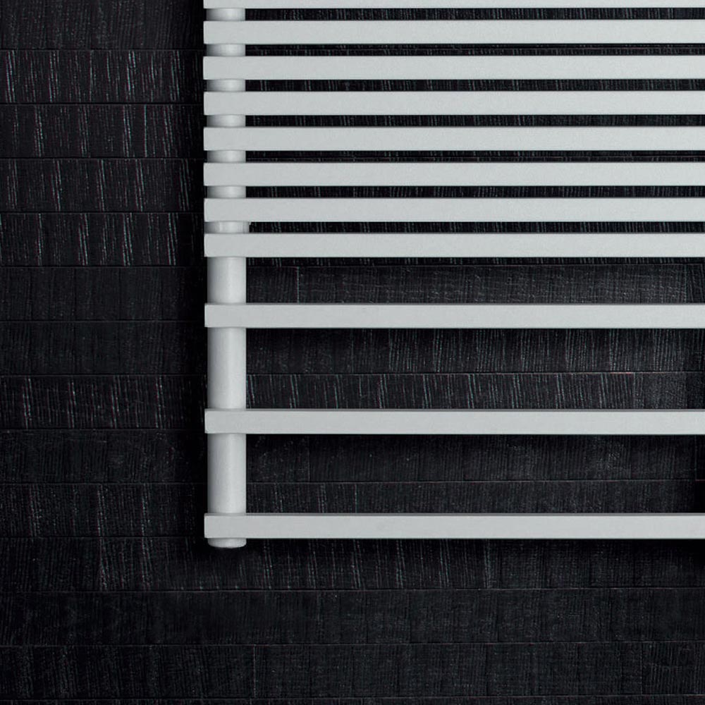 Electric towel warmer in carbon steel with BIGS finish with horizontal elements and vertical collectors entirely made in Italy with wall fixing kit included . Electrification kit positioned at the bottom right.