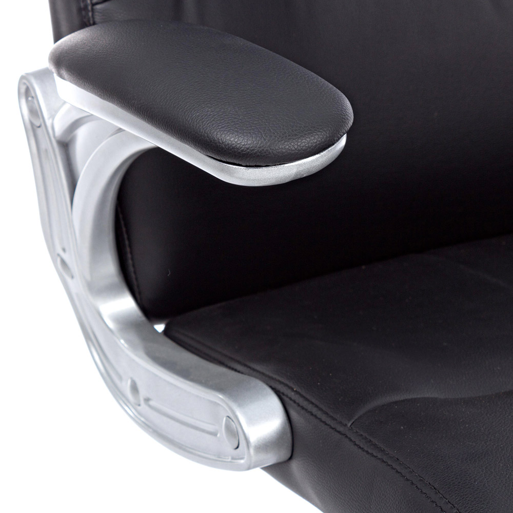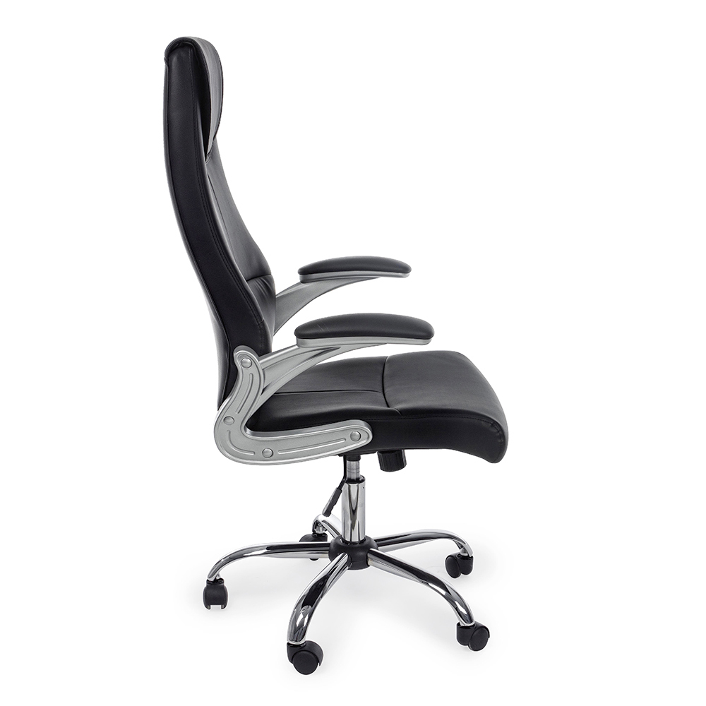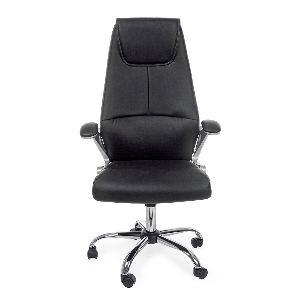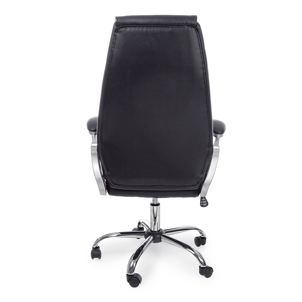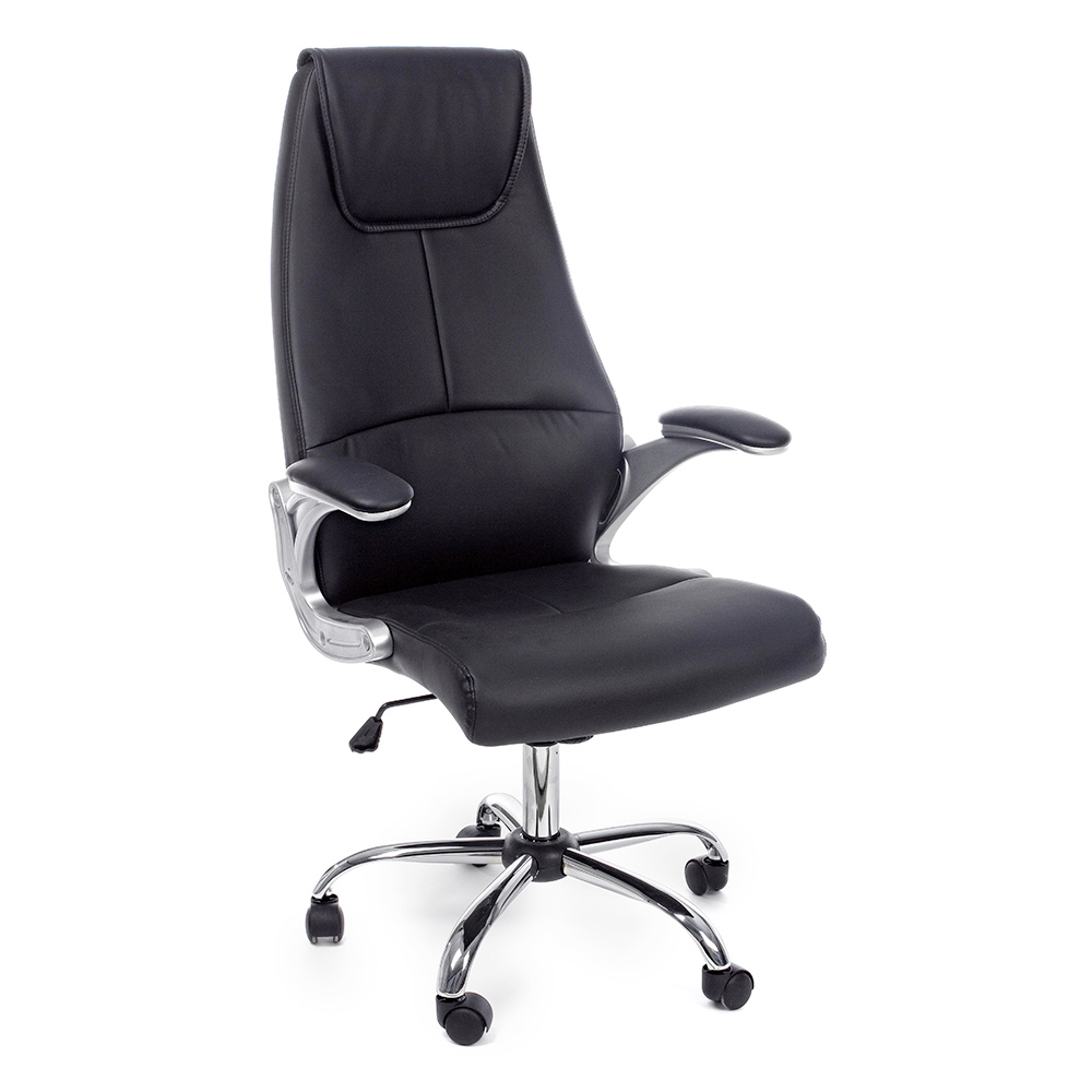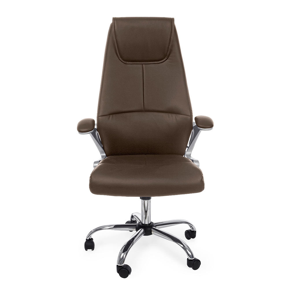 Ergonomic office armchair in steel with armrests and black or brown imitation leather.