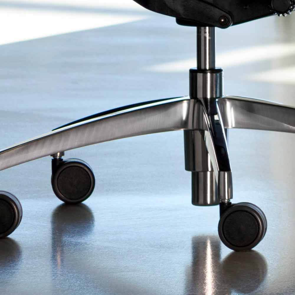 Made with a swivel steel structure and with wheels with shiny chrome finishes, the elastic net of the backrest and the innovative system of protected springs inside the seat create a symbiosis of comfort and elegance.