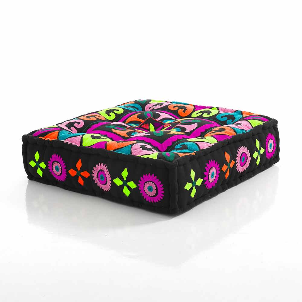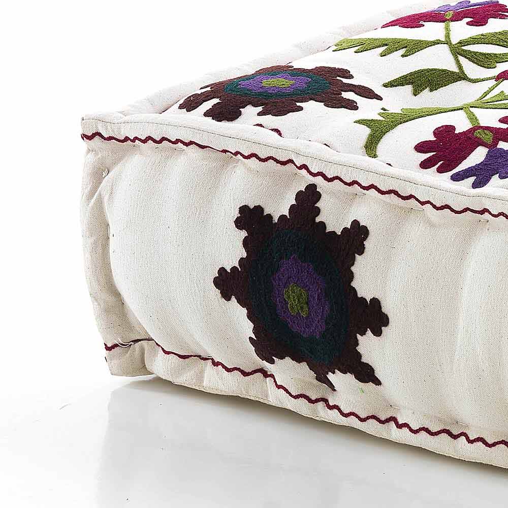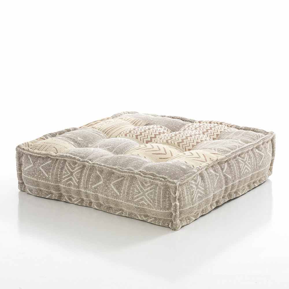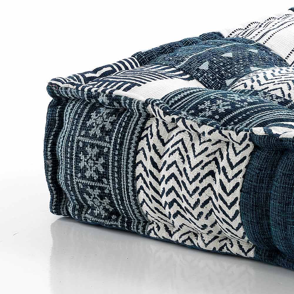 Pouf in patchwork fabric or square velvet with an ethnic design.