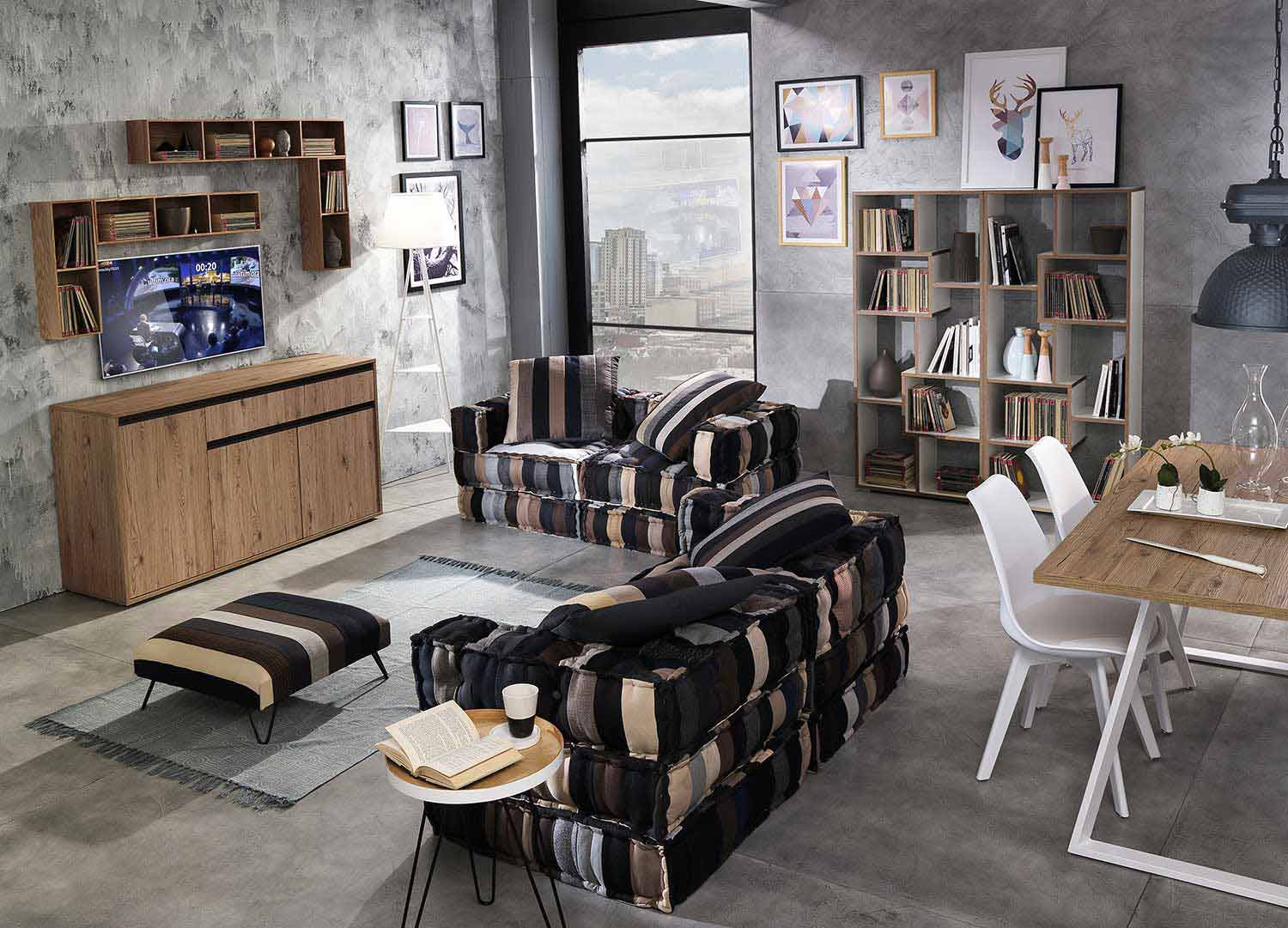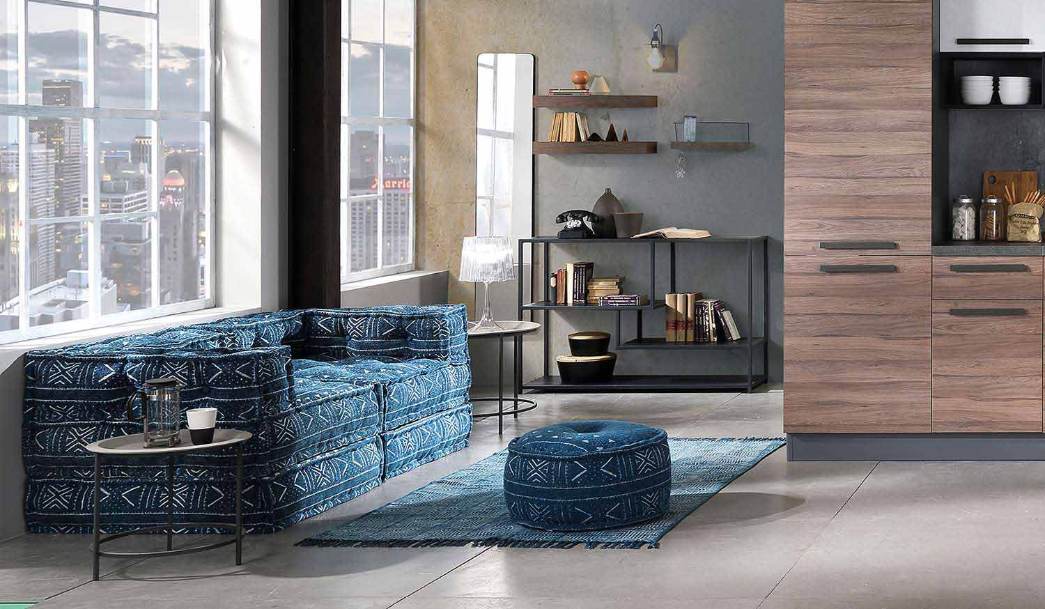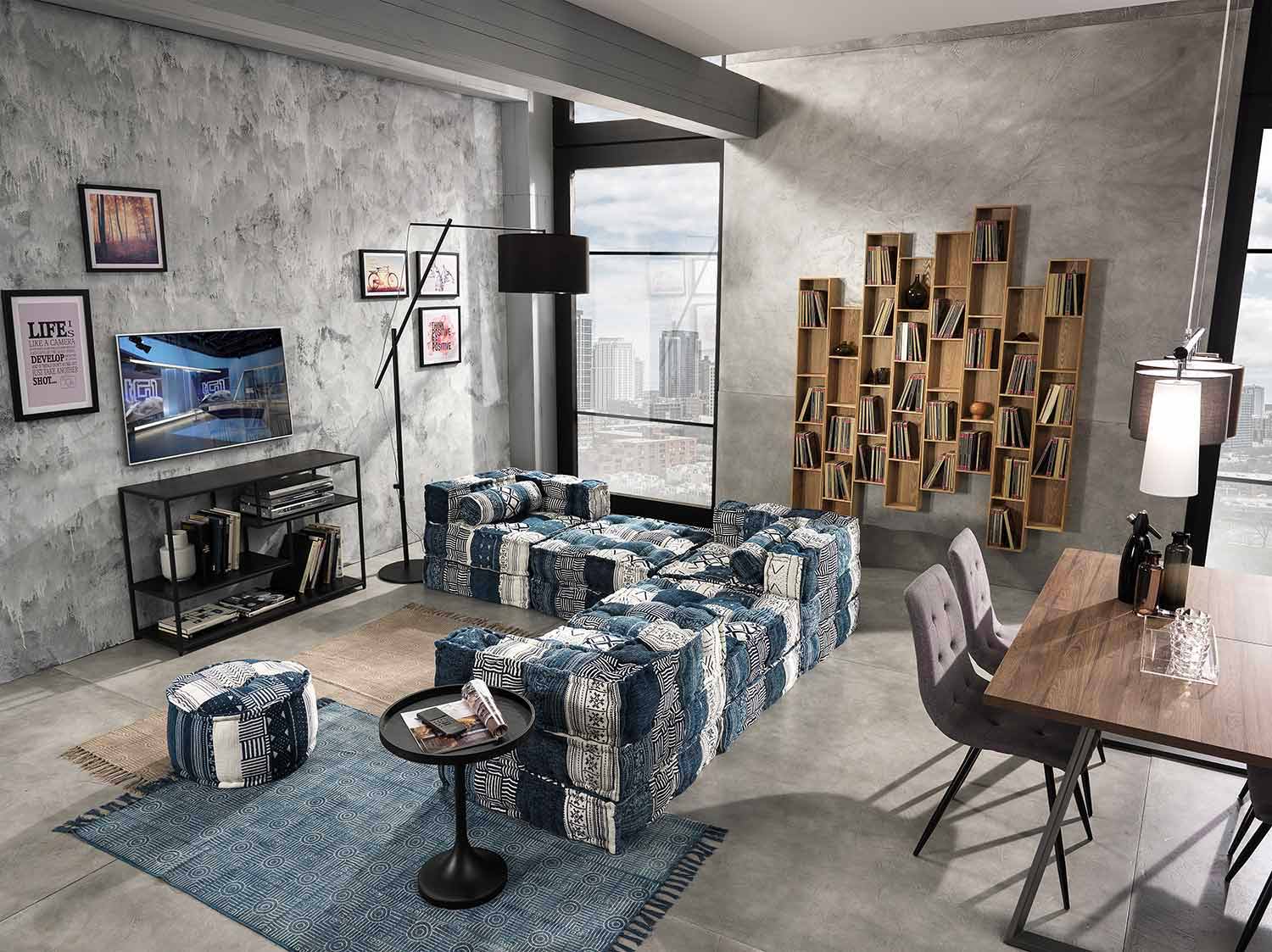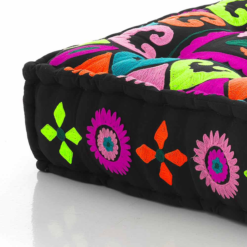 Pouf in patchwork fabric or square velvet with an ethnic design.