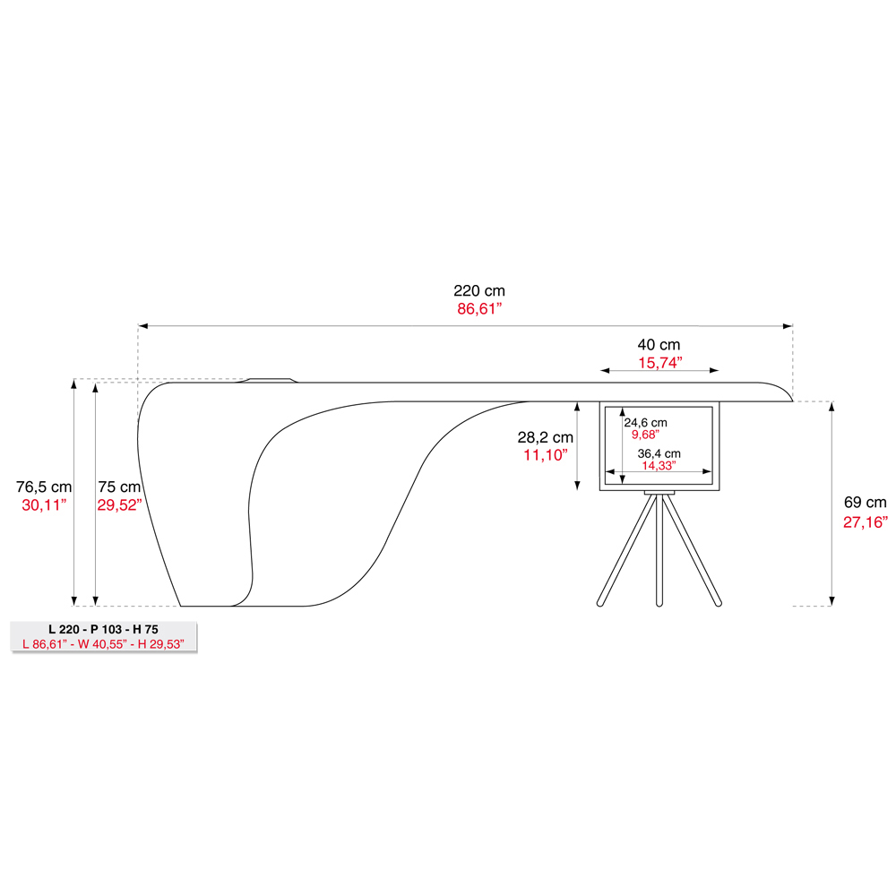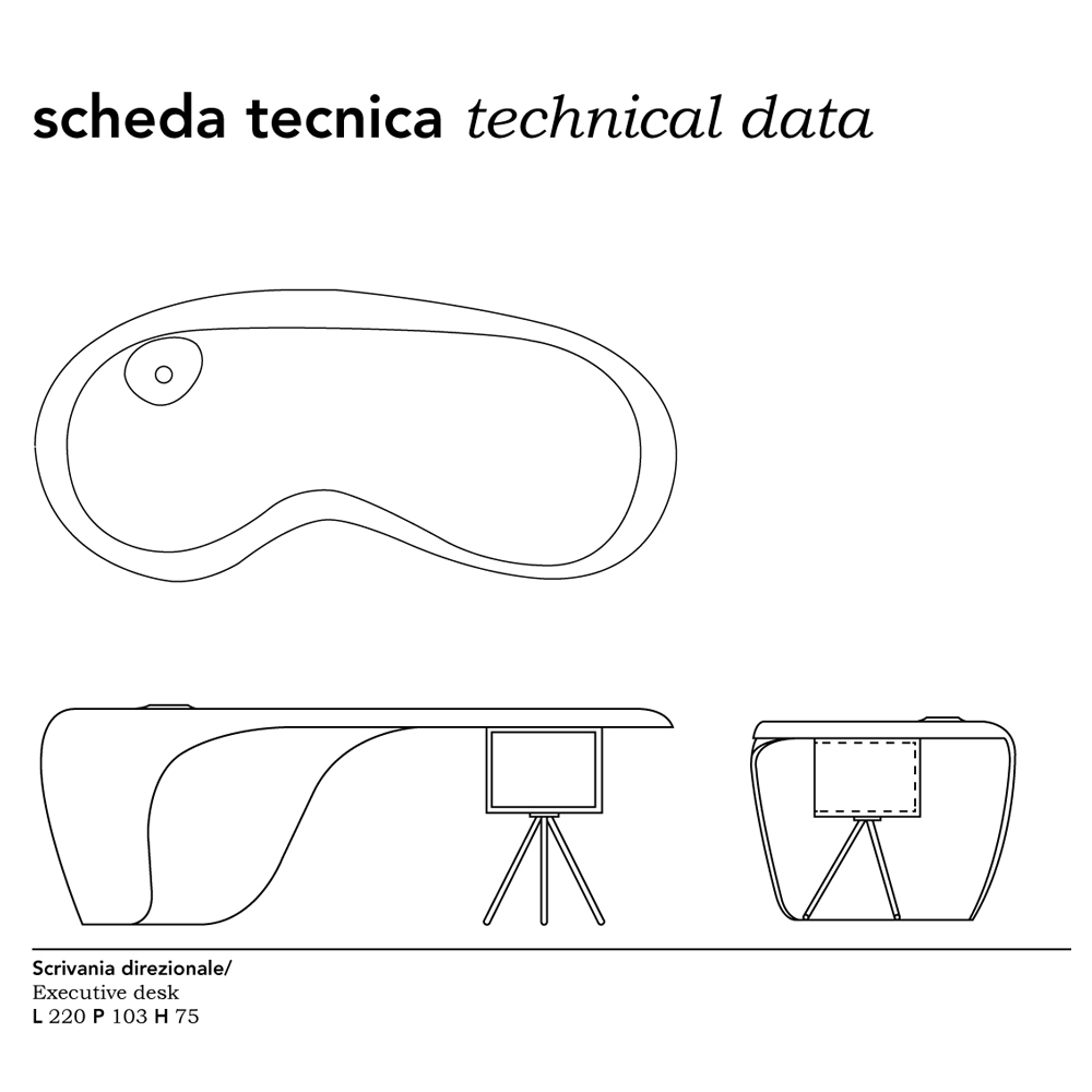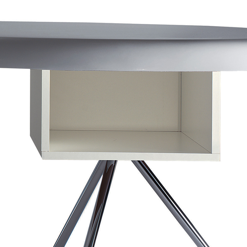 This desk consists of a self-supporting molded shell in high density polyurethane, available in three different variants: Glossy, Embossed Matt or in the metallic version. Once you have chosen the finish of the desk, you can also choose the color variant that best suits you.