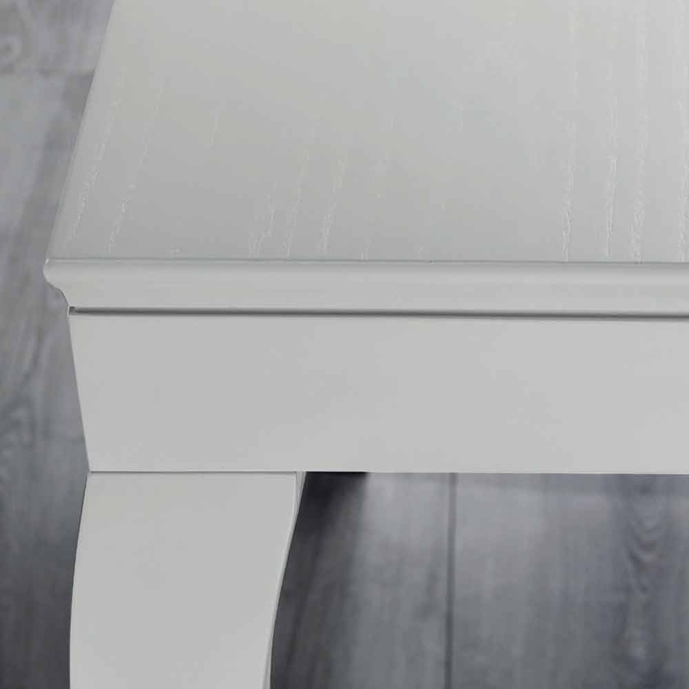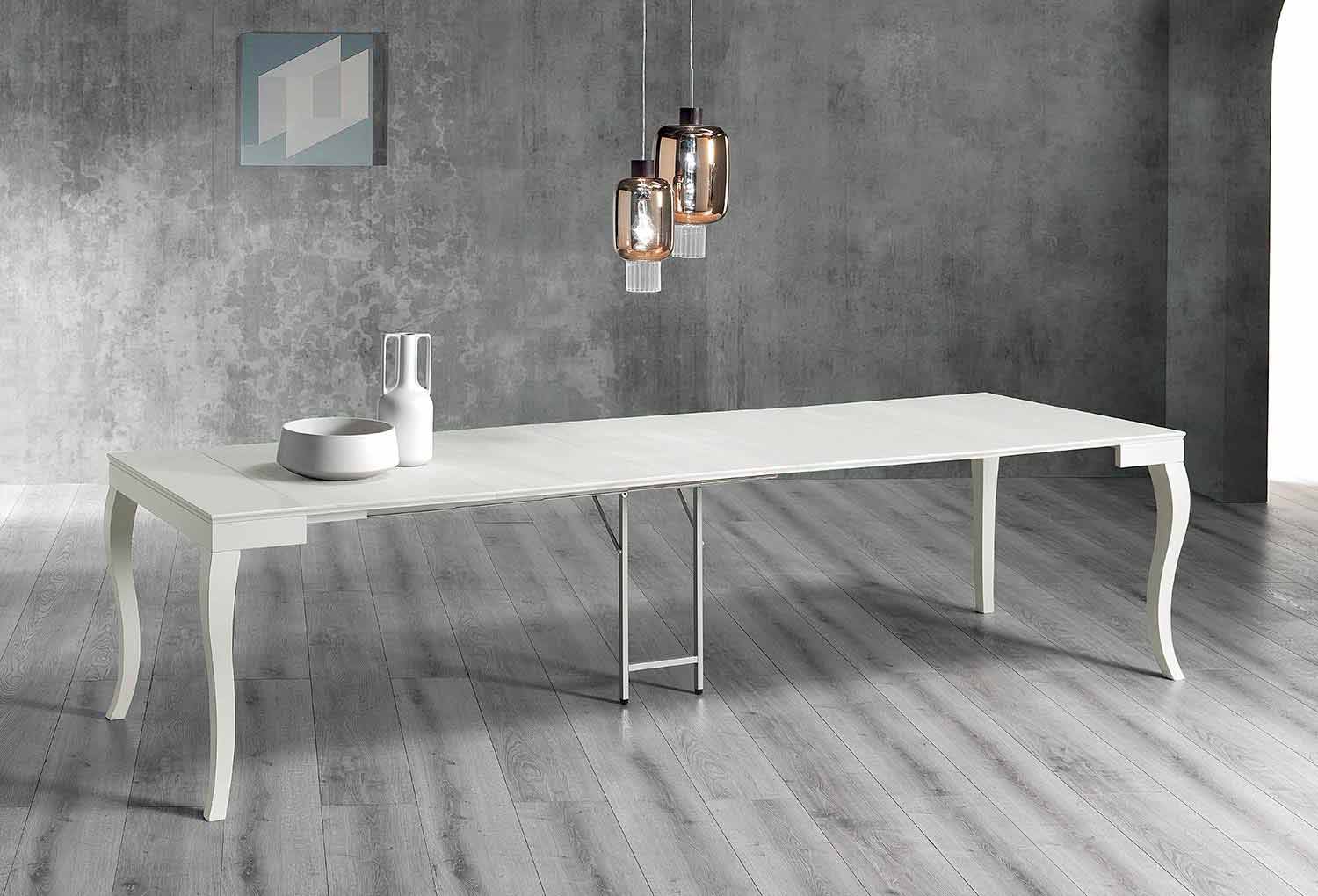 open pore lacquered ral 9002 (gray white). The top becomes extendable through a central opening with aluminum guides and central stand; in the middle can be inserted 5 shelves of 53 cm each contained in a separate
